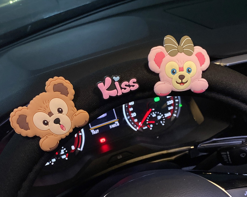 • 검은 얼음 실크 스티어링 휠 커버 미소 큰 베리 베어 키스