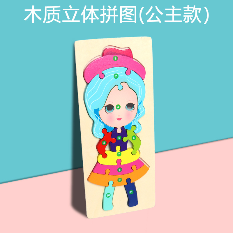 어린이용 나무 입체 퍼즐 3D 만화 동물 대형 공주 조기 교육 퍼즐 교육용 블록 장난감 조립스토어 가기