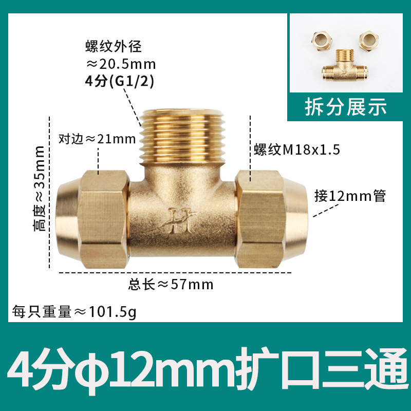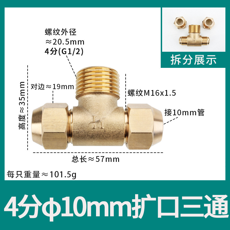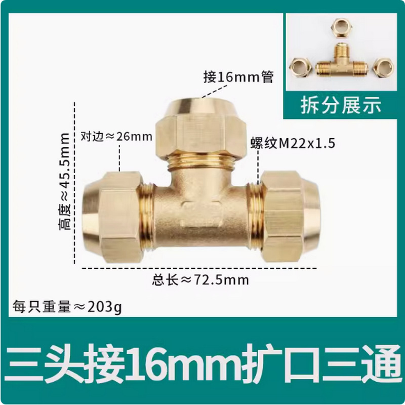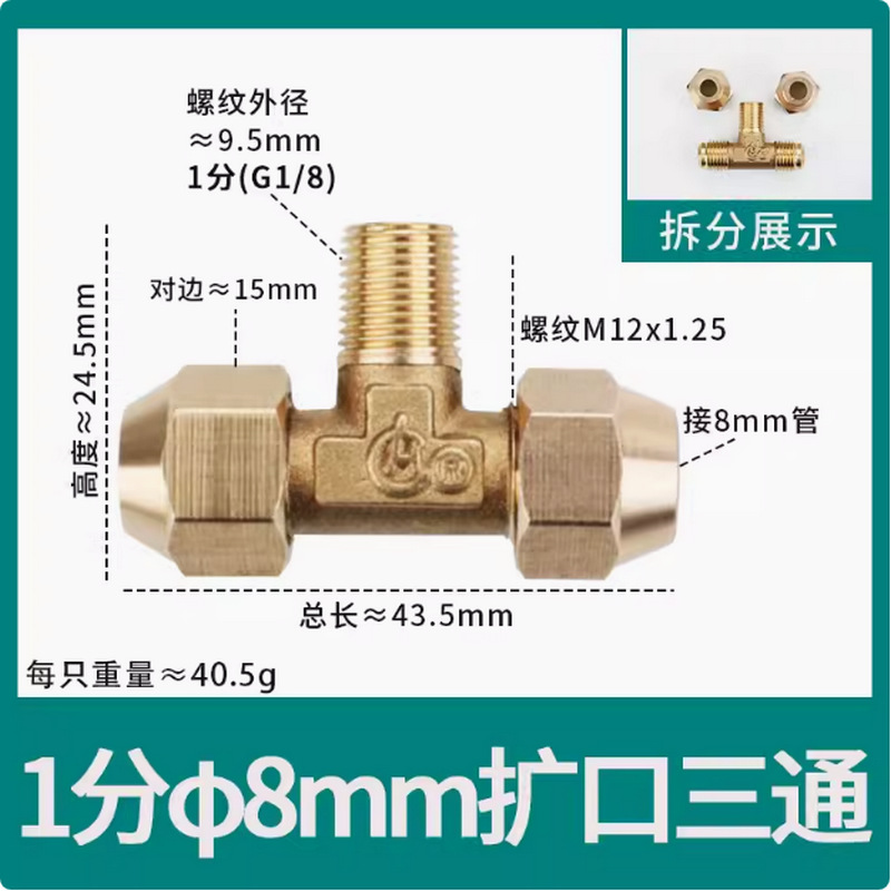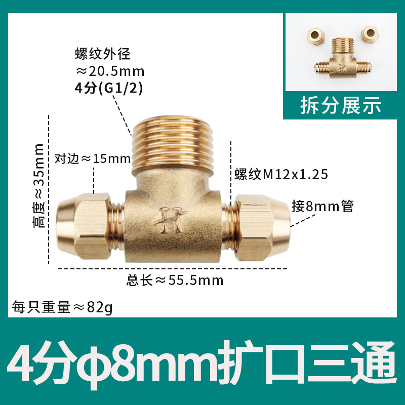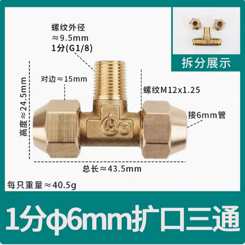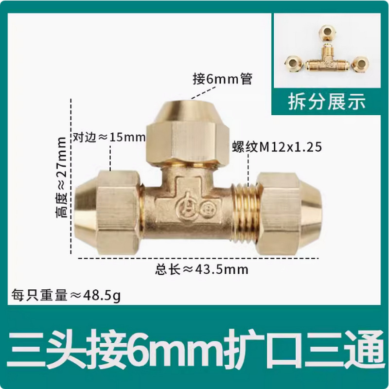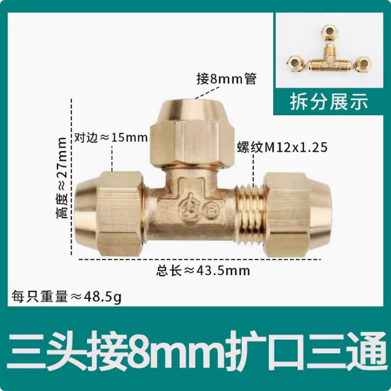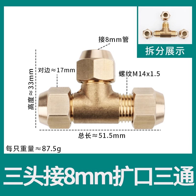 • φ8 추가 두께(8mm 구리 파이프 M14*1.5 스레드 19 반대편 너트에 연결된 3개의 헤드)