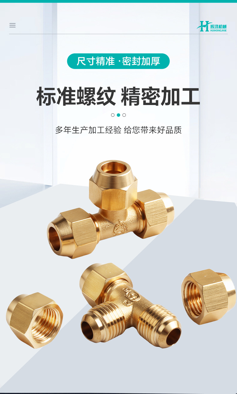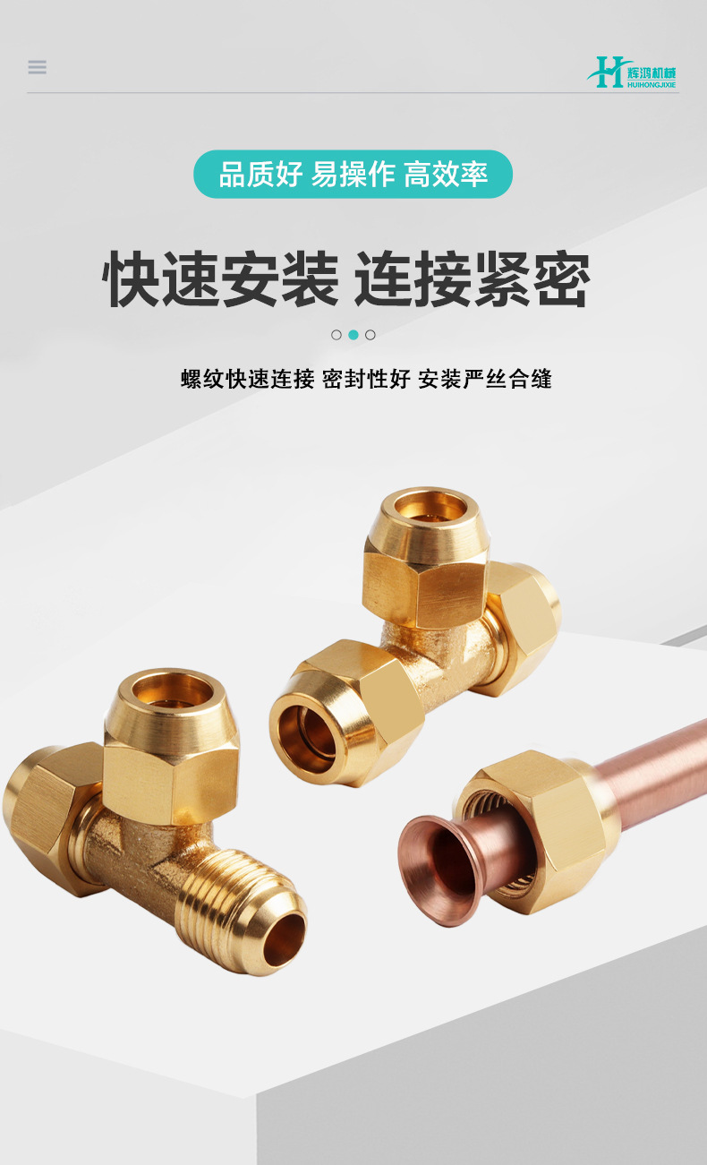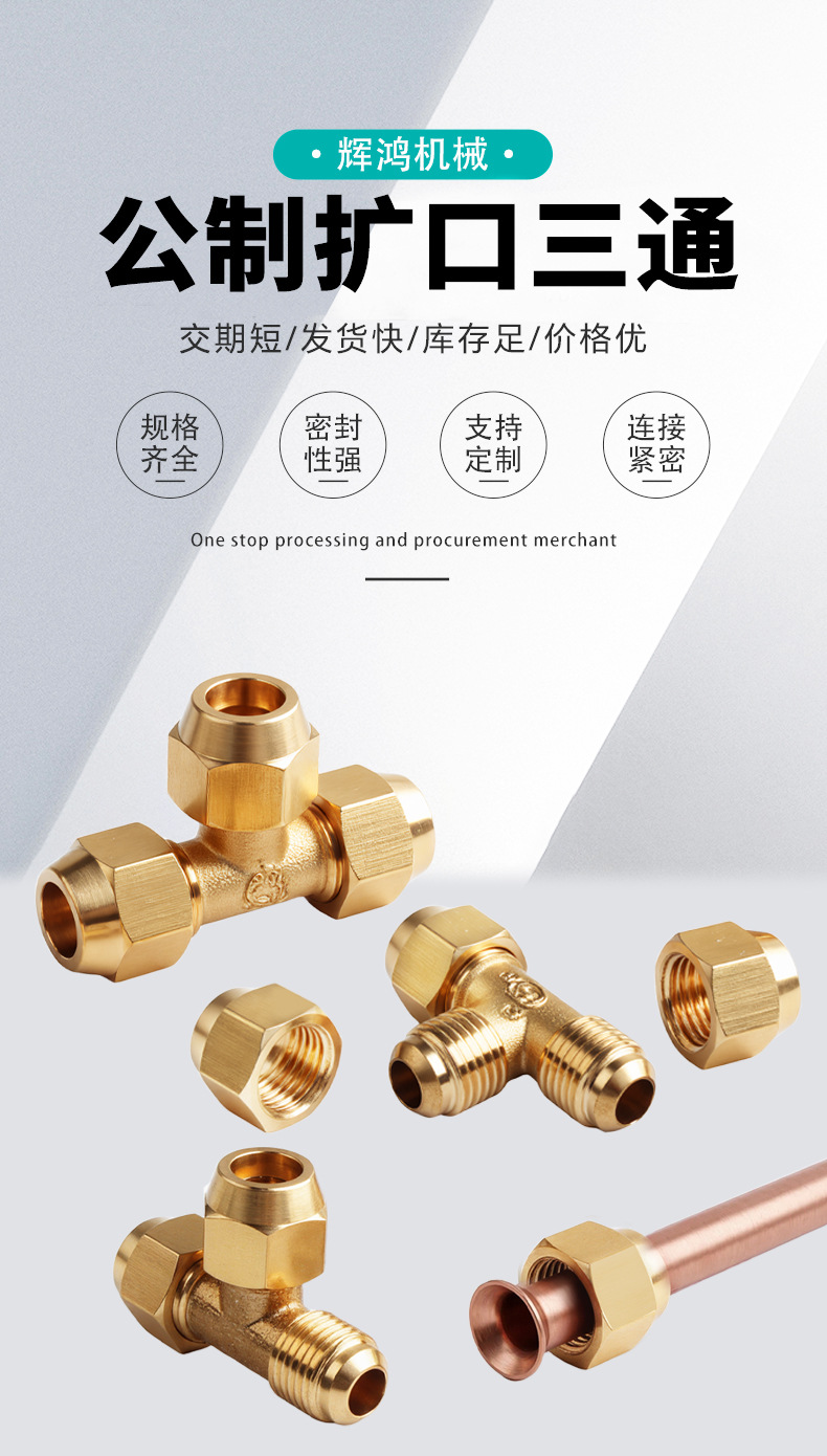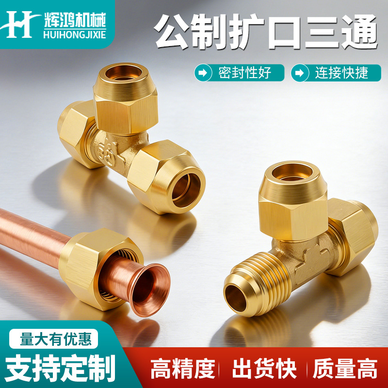 구리관용 동관/알루미늄관용 등경 플레어형 삼방향 연결부, 냉난방용 삼방향 조인트