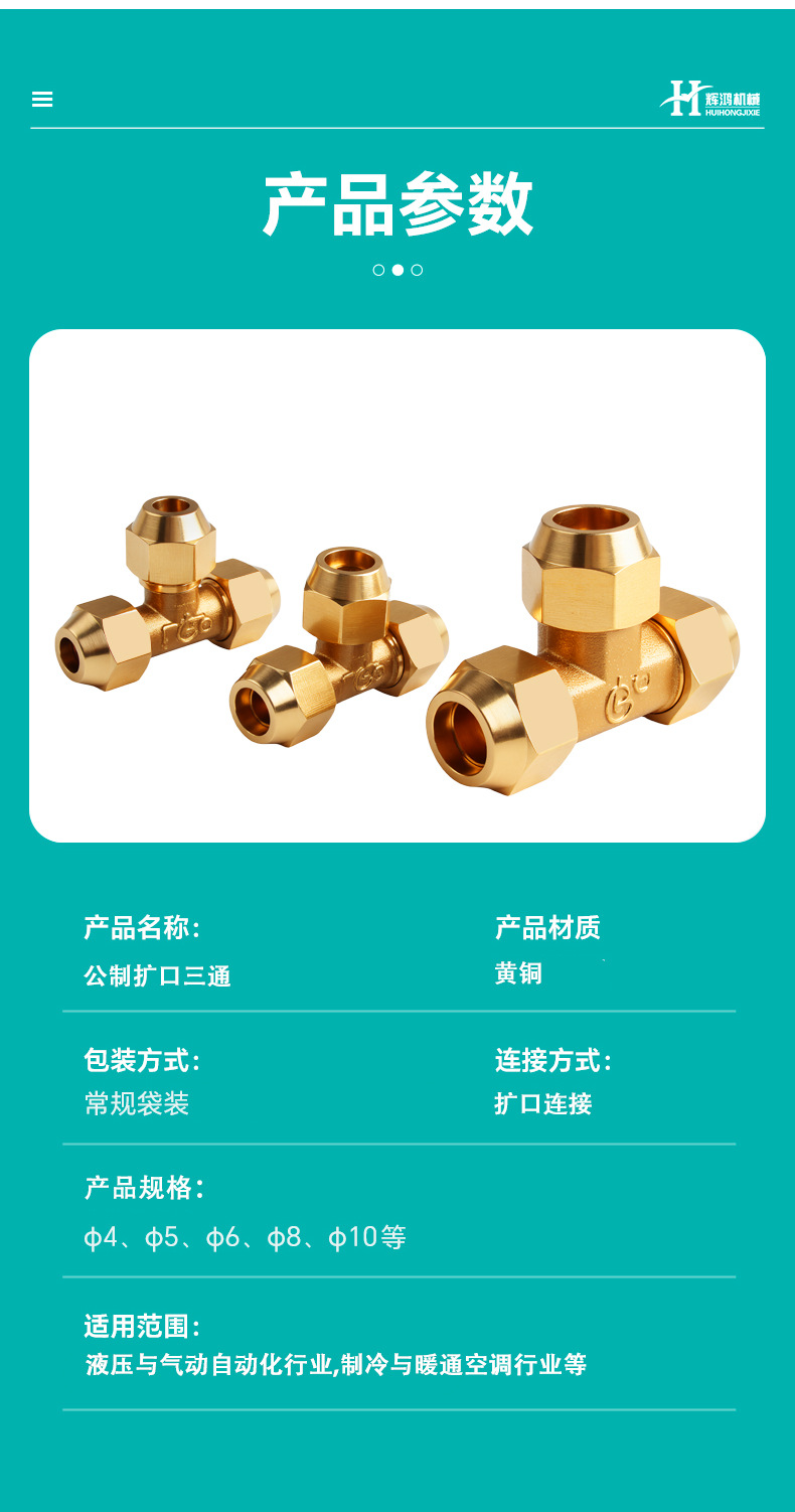 • φ6-1/2-φ6(중앙에 4개의 포인트가 있고 양쪽 끝이 6mm 구리 파이프에 연결됨)
