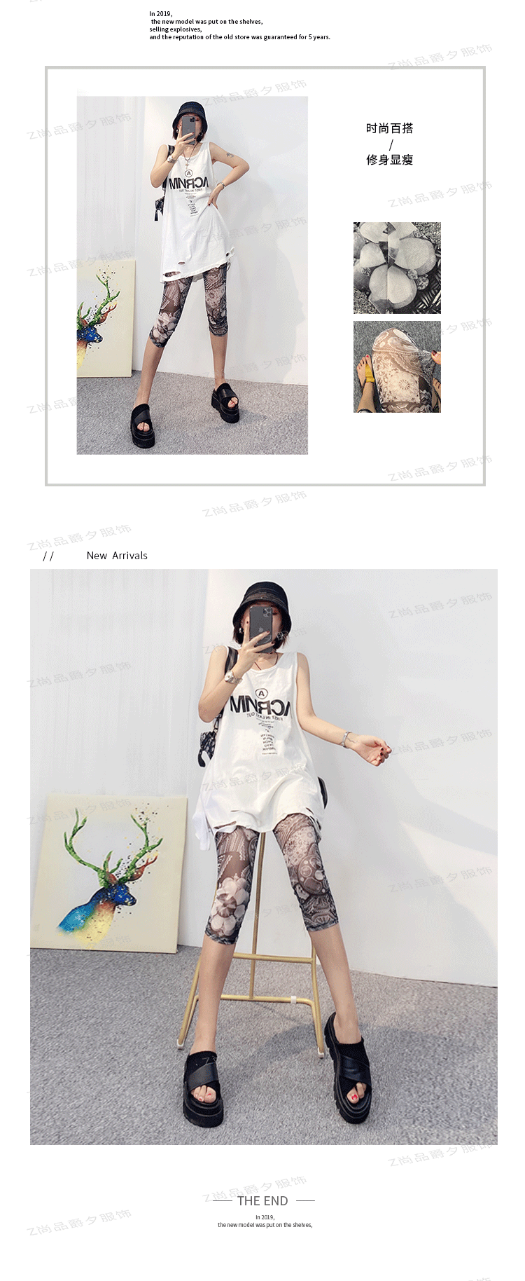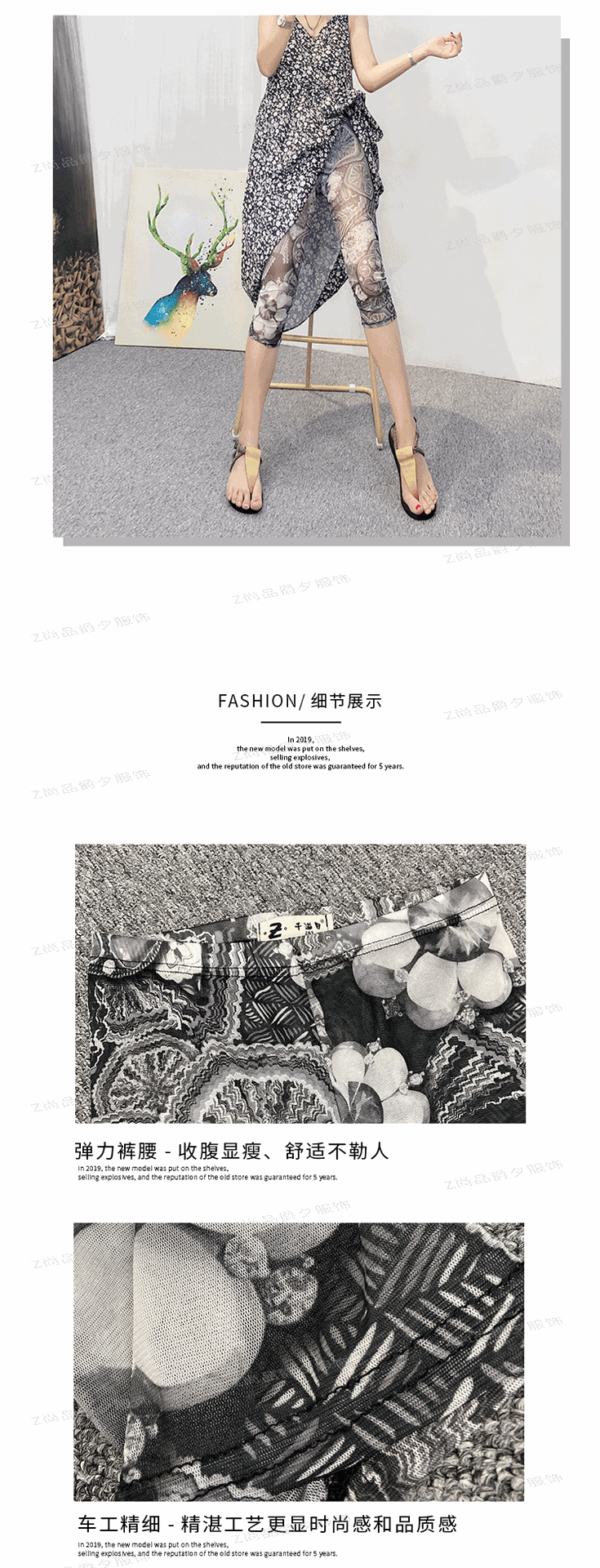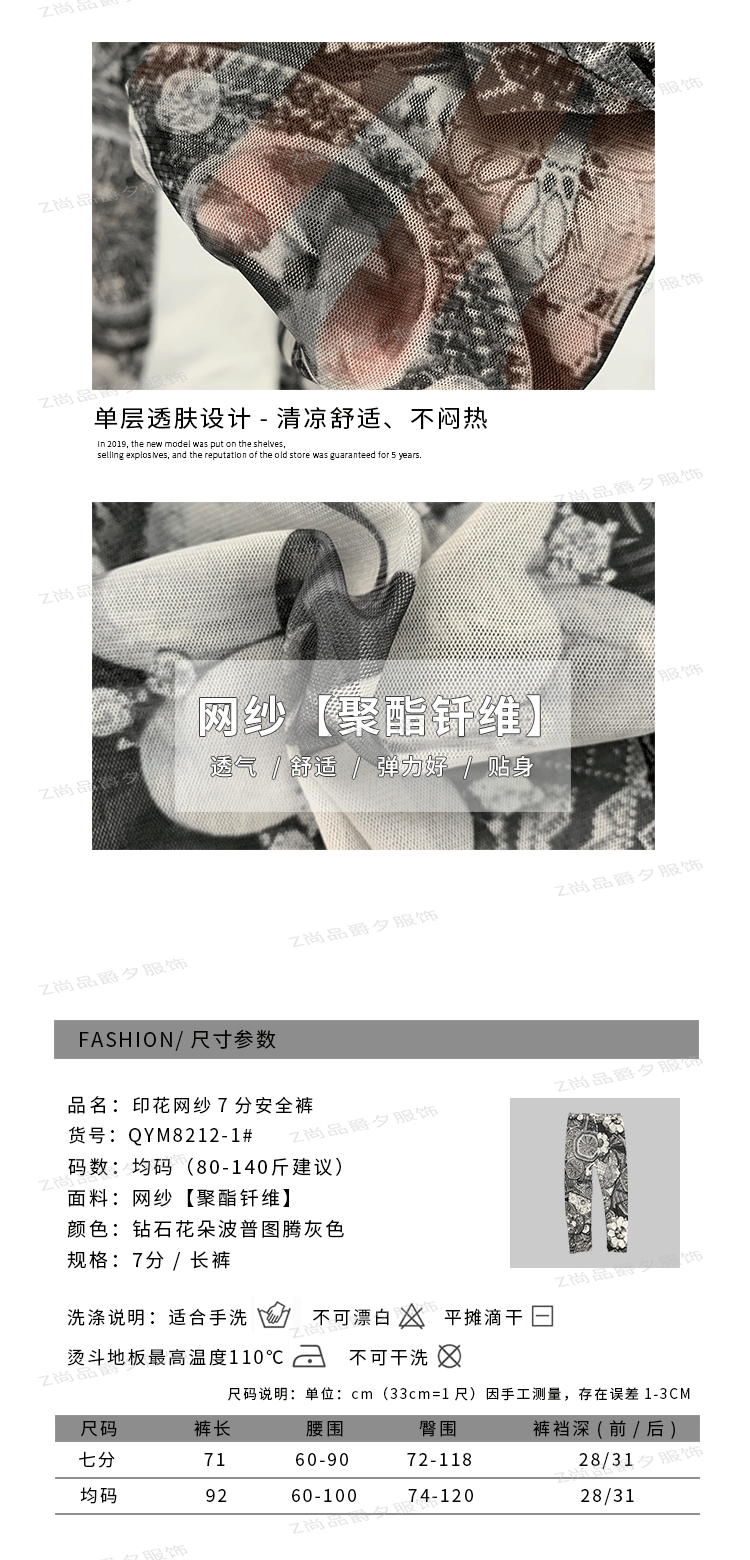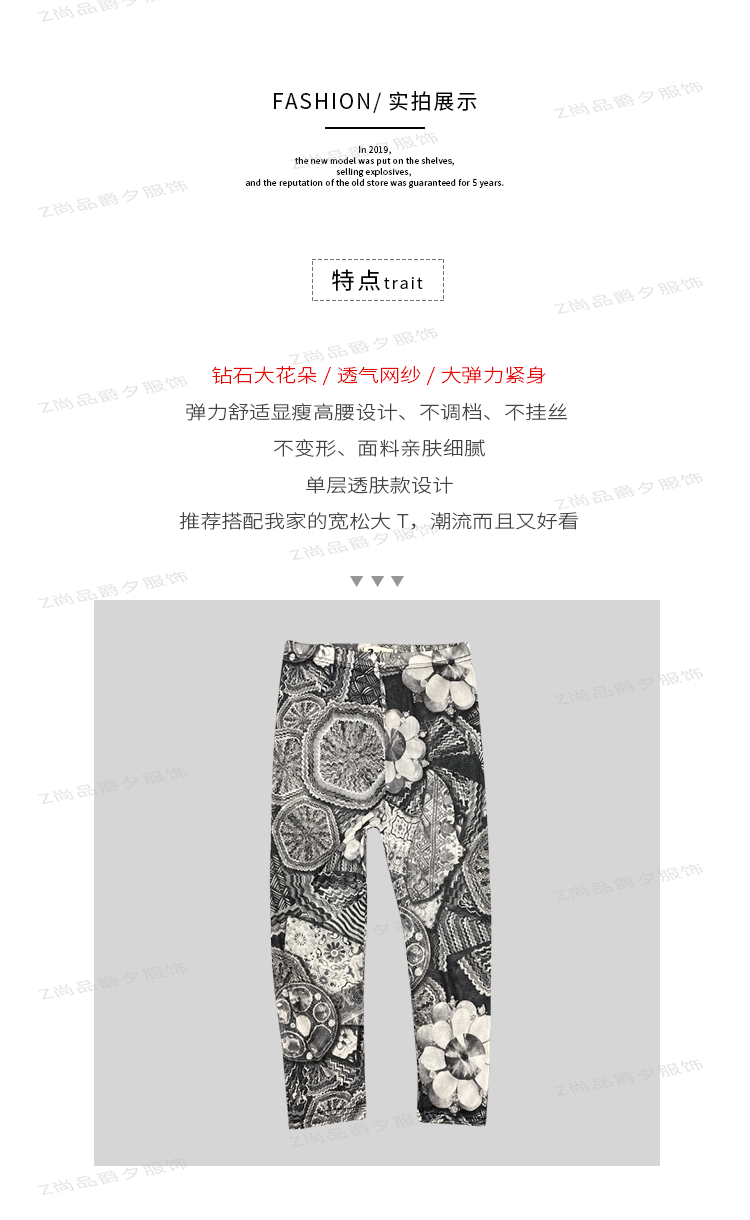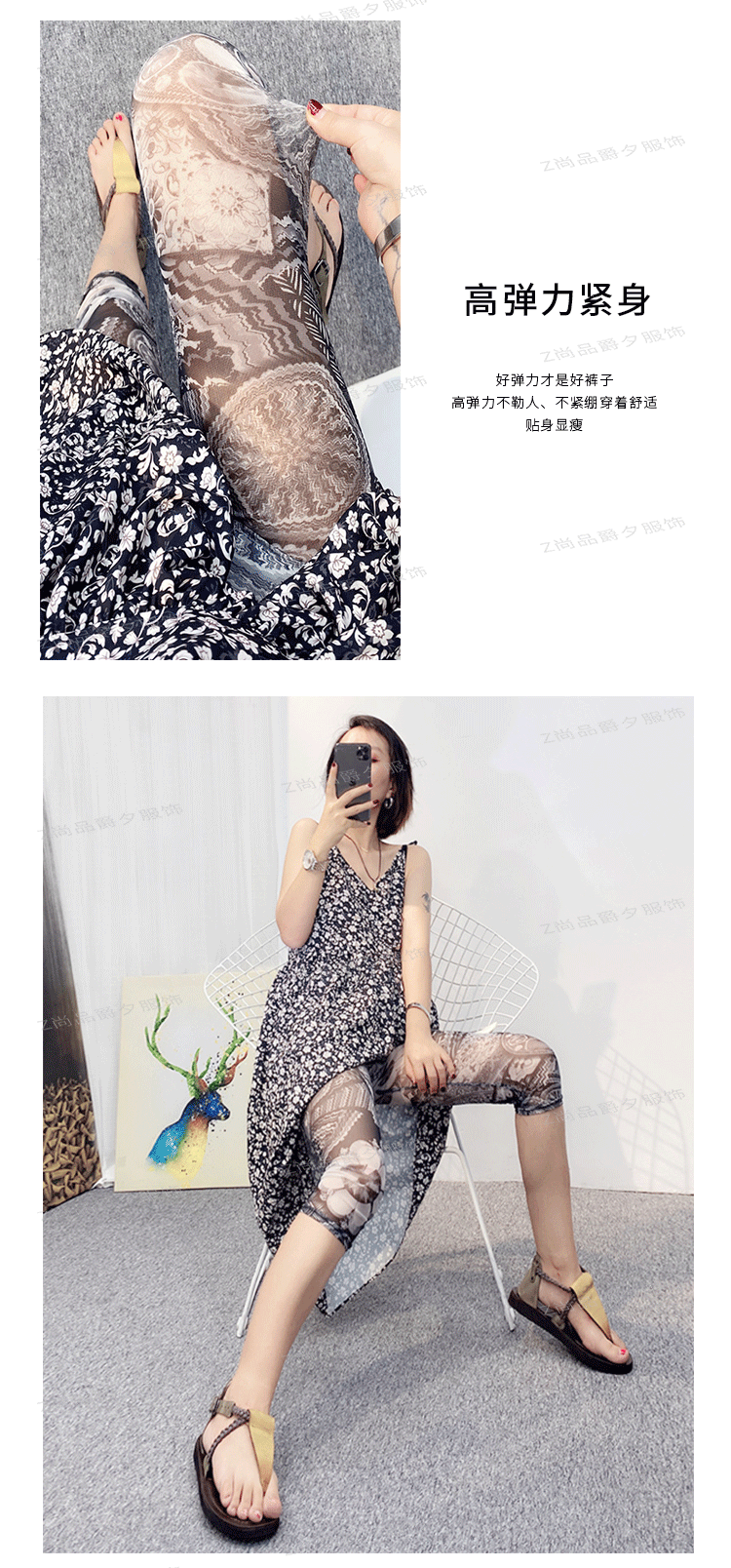메쉬 레깅스 여성용 여름 얇은 프린트 하이웨이스트 신축성 있는 꽃무늬 팬츠 타이트 팬츠 8부/9부 바지스토어 가기