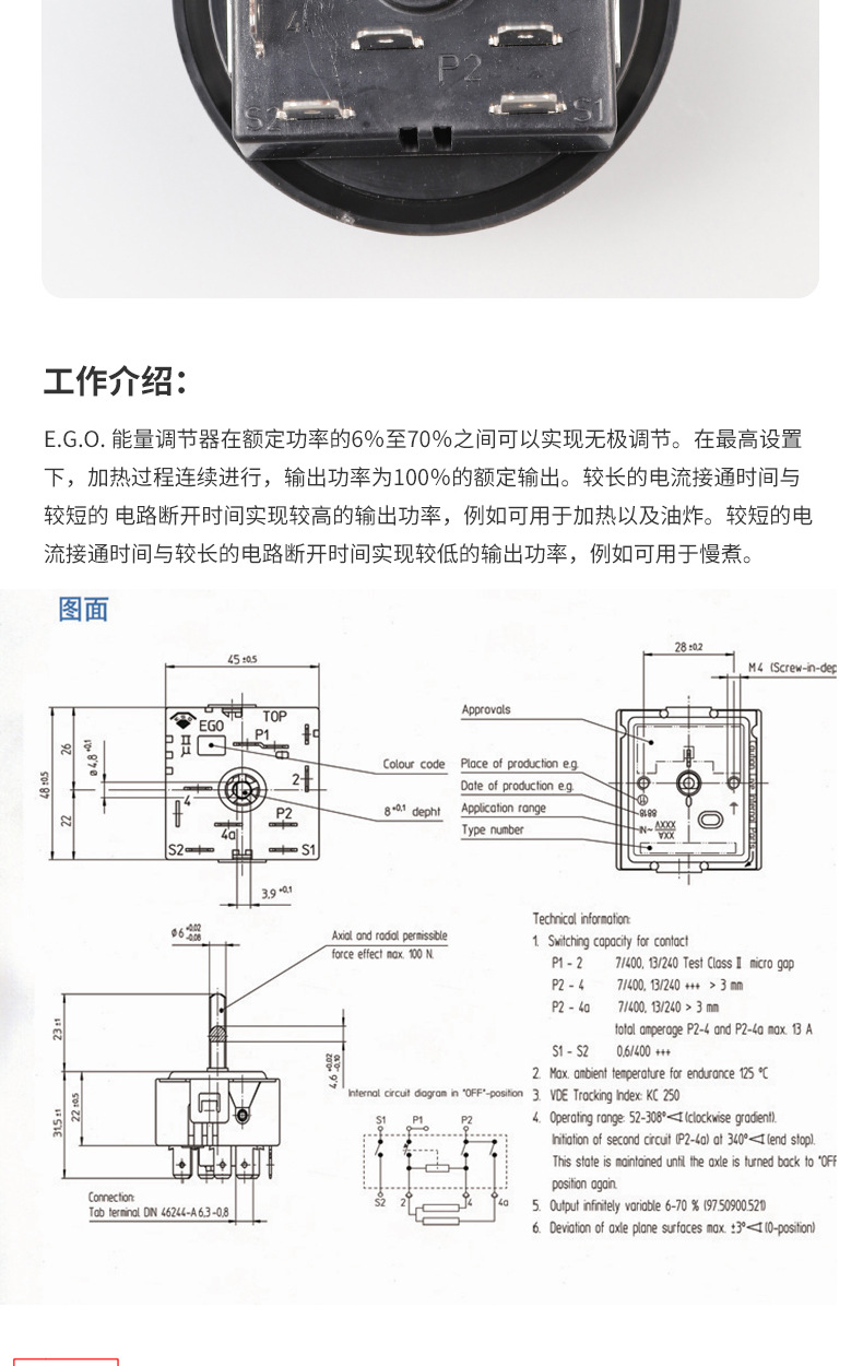 독일 EGO 온도 조절기 50.87081.000 에너지 조절 전기 프라이어 오븐 온도 조절 스위치 부품스토어 가기