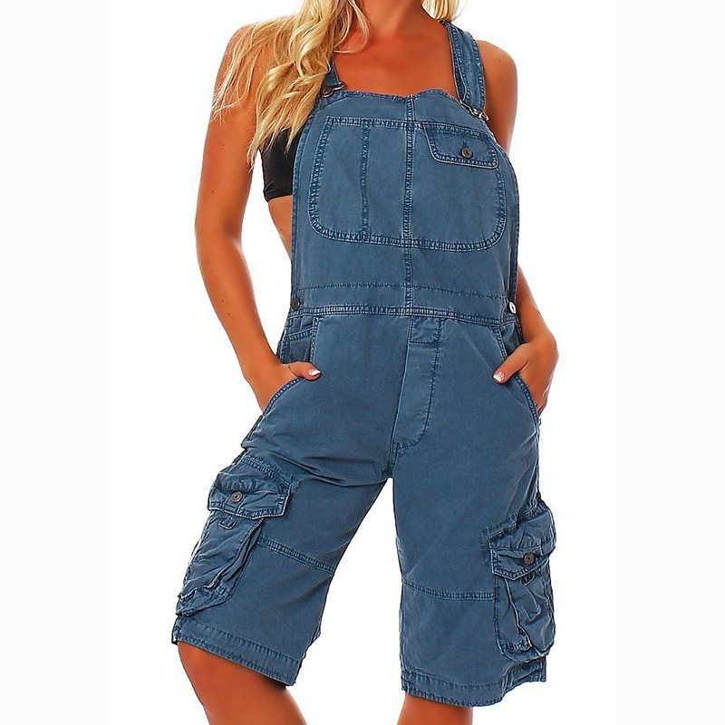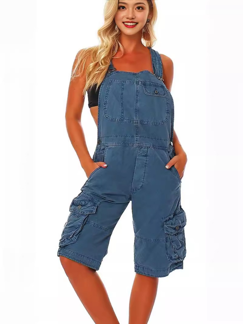 국경 2024 아마존 U-칼라 서스펜더 바지 여성 캐주얼 패션 숄더스트랩 포켓 데님 바지스토어 가기