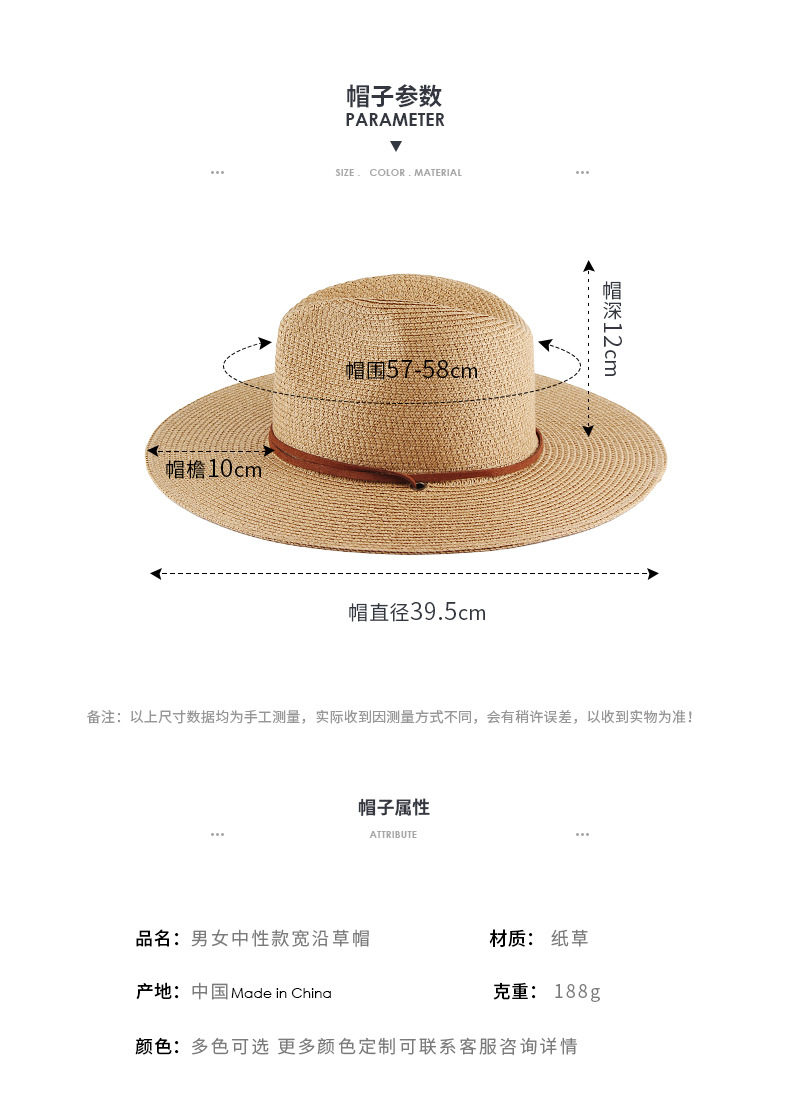 남녀 중성 여름 양산 밀짚 모자 넓은 태양 모자 야외 여행 비치 모자 공장 직접 도매스토어 가기