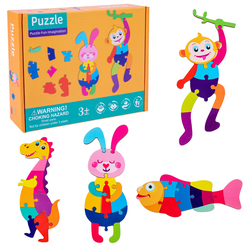 크로스 보더 어린이 나무 만화 동물 3 차원 퍼즐 아기 조기 교육 작은 퍼즐 퍼즐 장난감 제조 업체 0스토어 가기