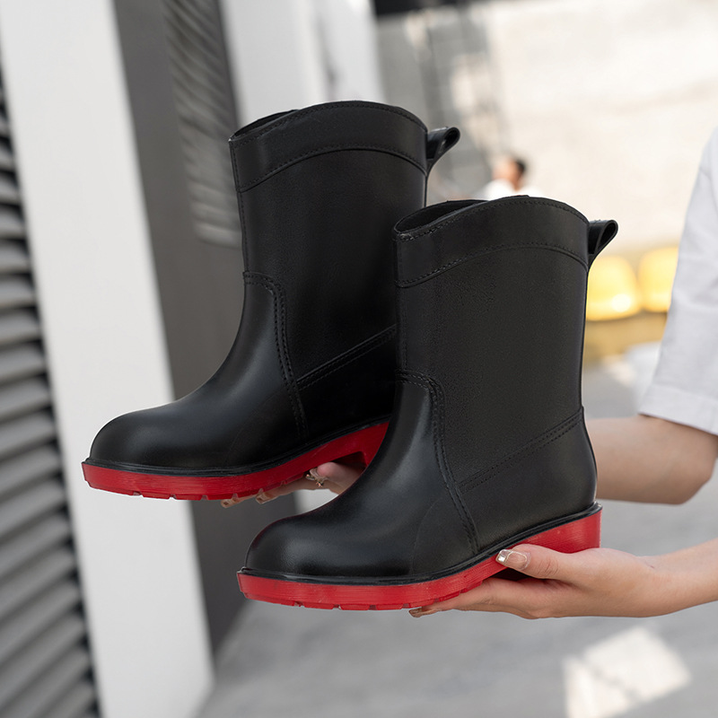 크로스 보더 패션 레인 부츠 여성용 미드 튜브 미끄럼 방지 주방 고무 신발 두꺼운 밑창 방수 세차 신발 비오는 날을위한 모든 일치 고무 신발