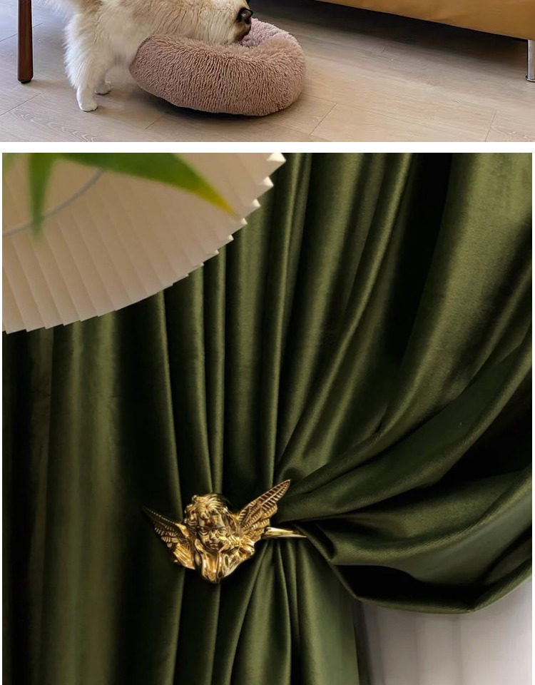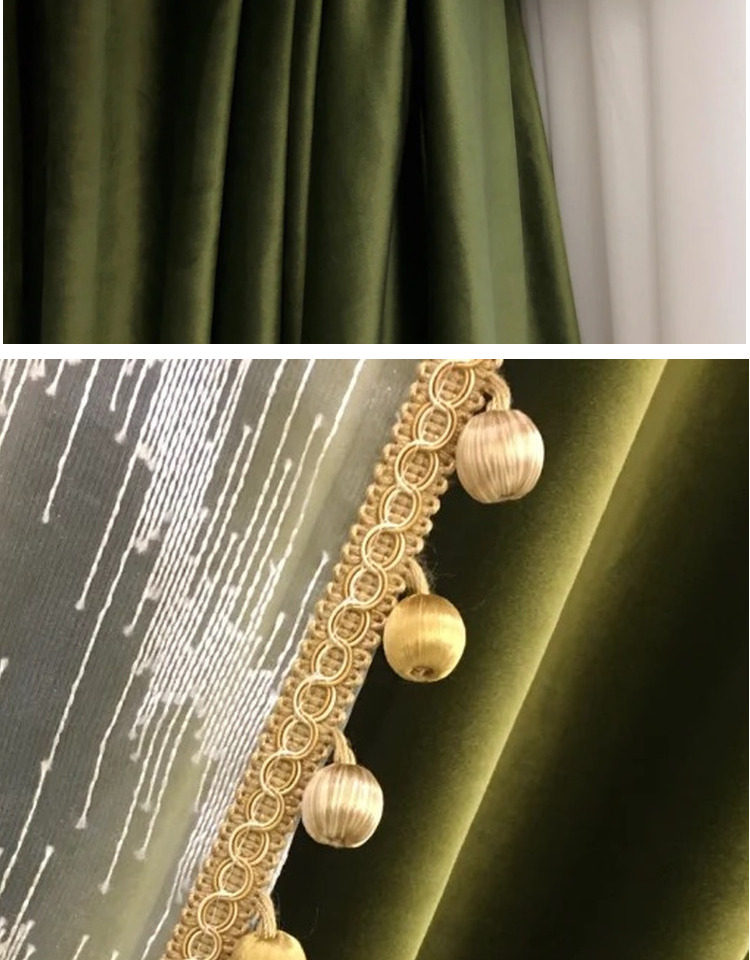 올리브 그린 벨벳 커튼 북유럽 현대 녹색 거실 침실 빌라 차양 완성 두꺼운 단색 커튼스토어 가기