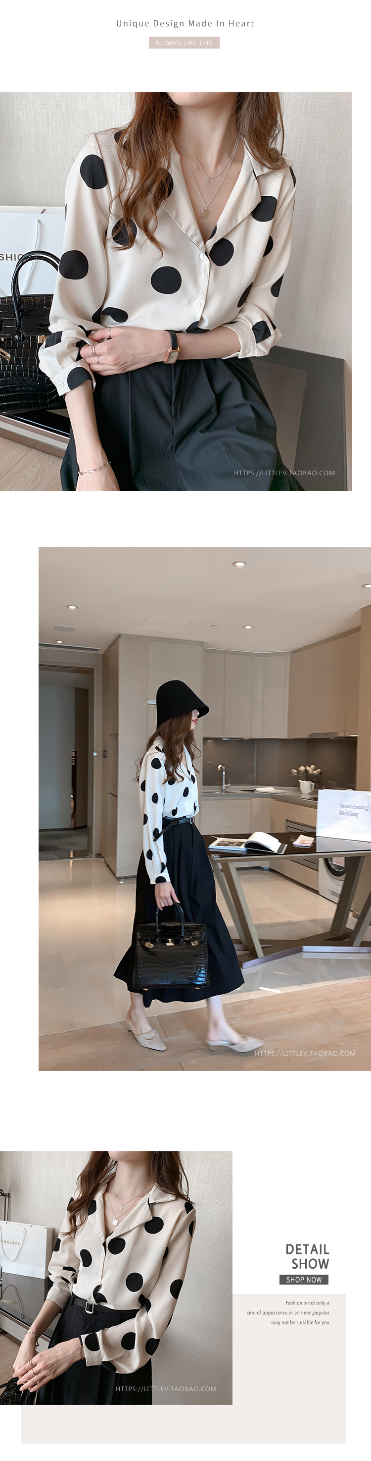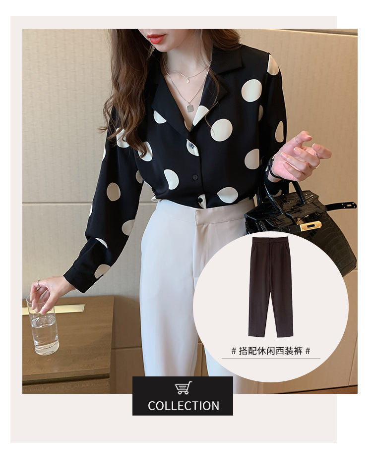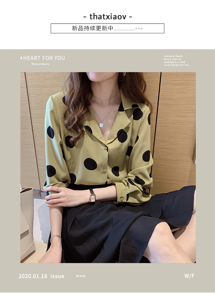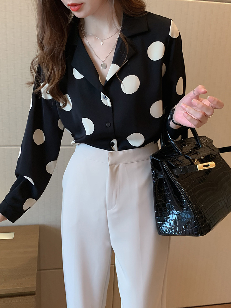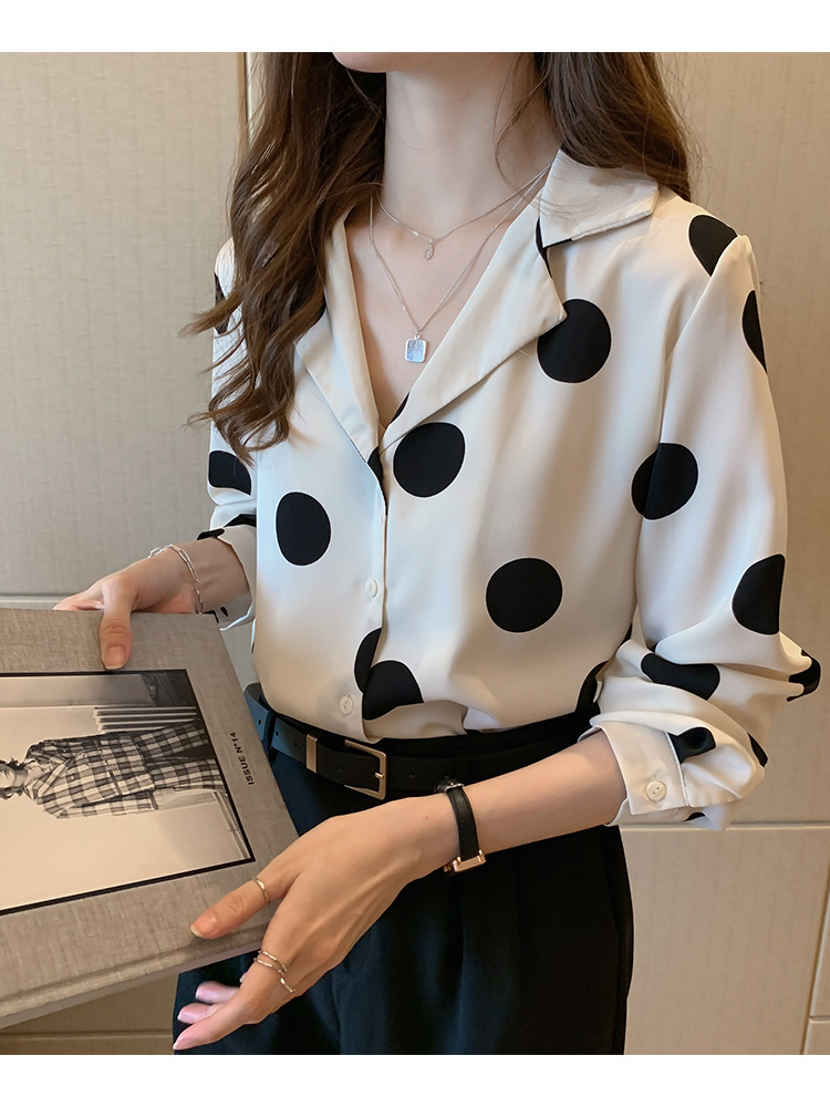 물방울무늬 셔츠 여성용 2025 봄 스타일 홍콩풍 레트로 디자인 감성적인 시크한 쉬폰 셔츠 이너웨어 트렌디스토어 가기