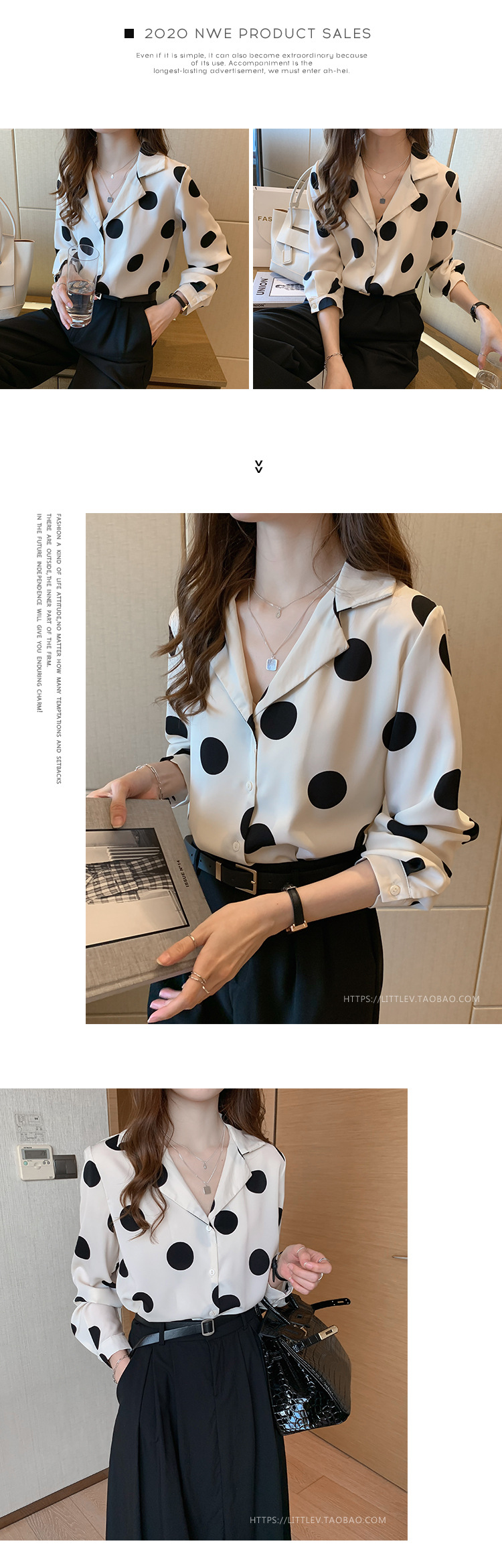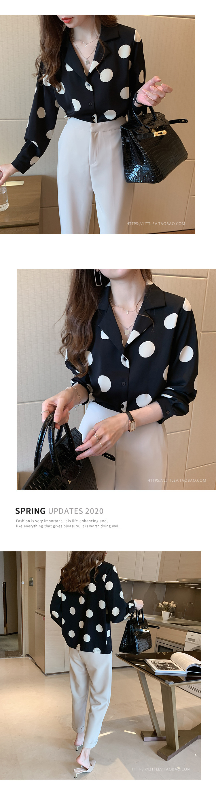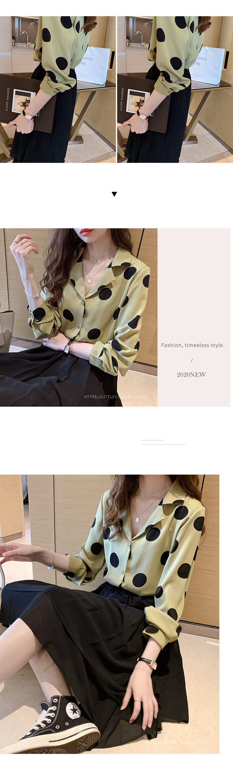 물방울무늬 셔츠 여성용 2025 봄 스타일 홍콩풍 레트로 디자인 감성적인 시크한 쉬폰 셔츠 이너웨어 트렌디스토어 가기