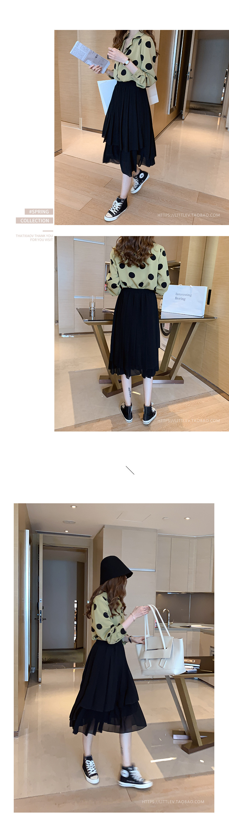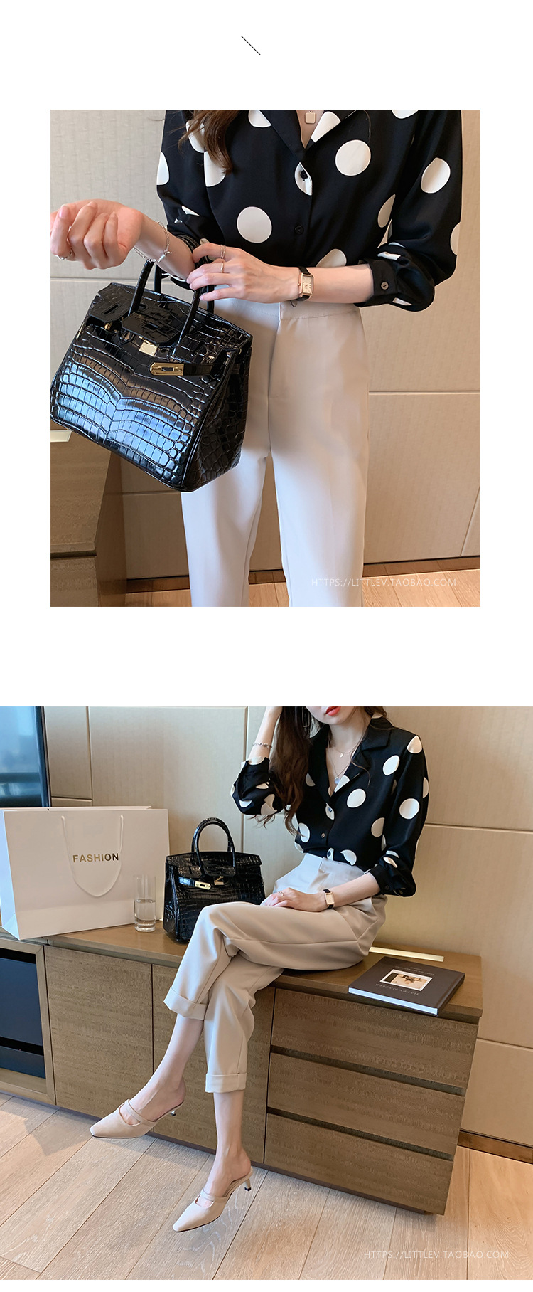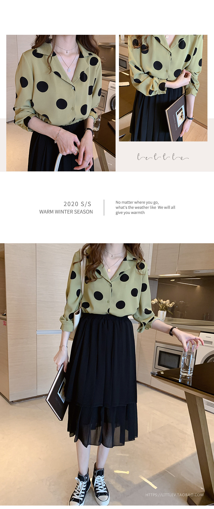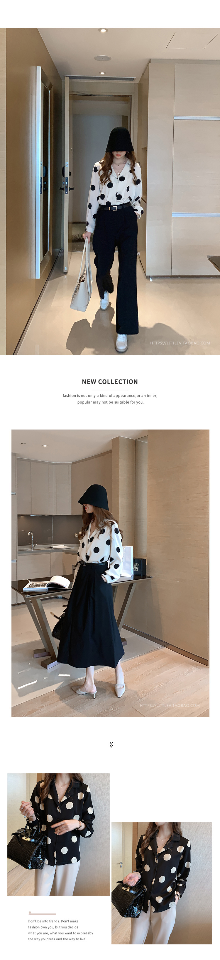 물방울무늬 셔츠 여성용 2025 봄 스타일 홍콩풍 레트로 디자인 감성적인 시크한 쉬폰 셔츠 이너웨어 트렌디스토어 가기