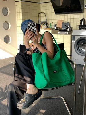 Huanghuajia 단색 캔버스 가방 2021 New in 여성용 가방 대용량 심플 한국 스타일 예술적 싱글 숄더 크로스바디 백스토어 가기