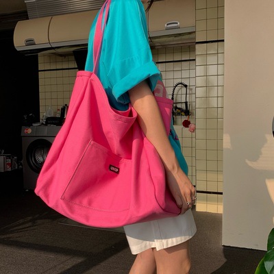 Huanghuajia 단색 캔버스 가방 2021 New in 여성용 가방 대용량 심플 한국 스타일 예술적 싱글 숄더 크로스바디 백