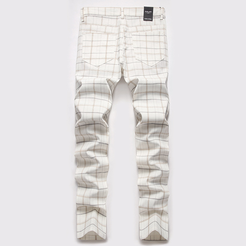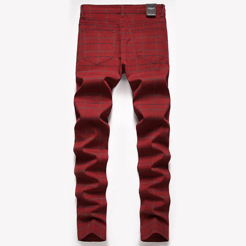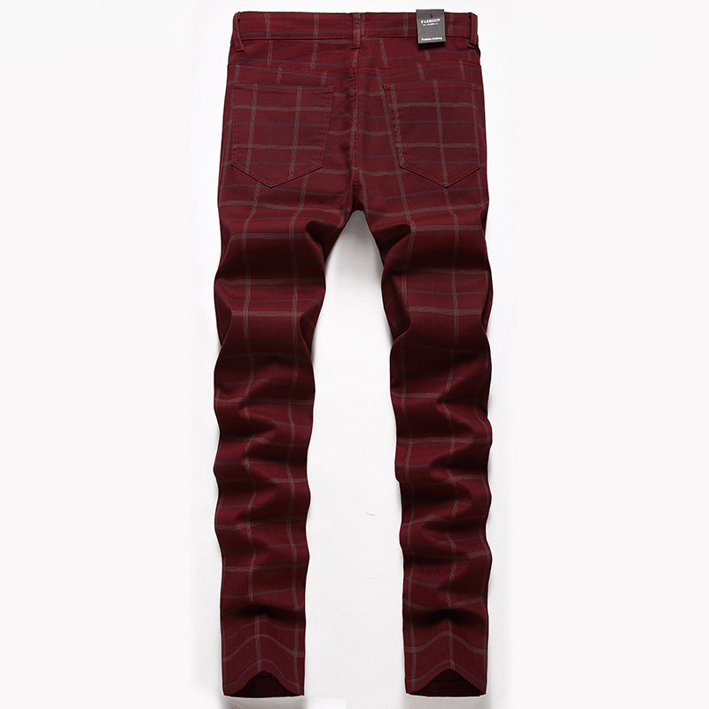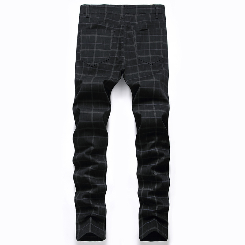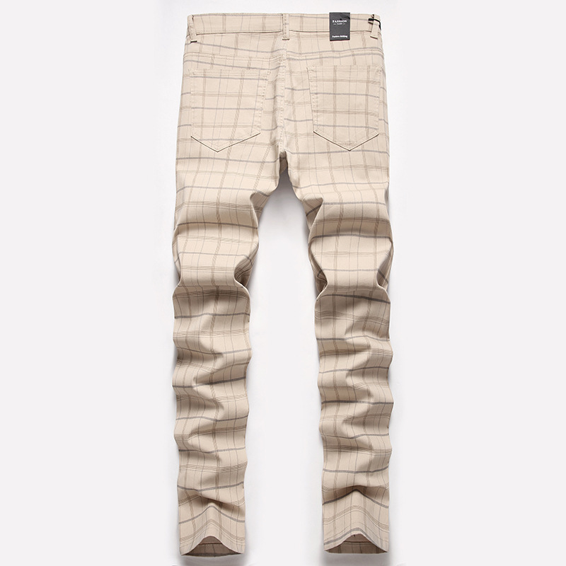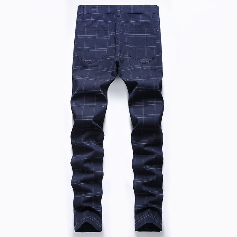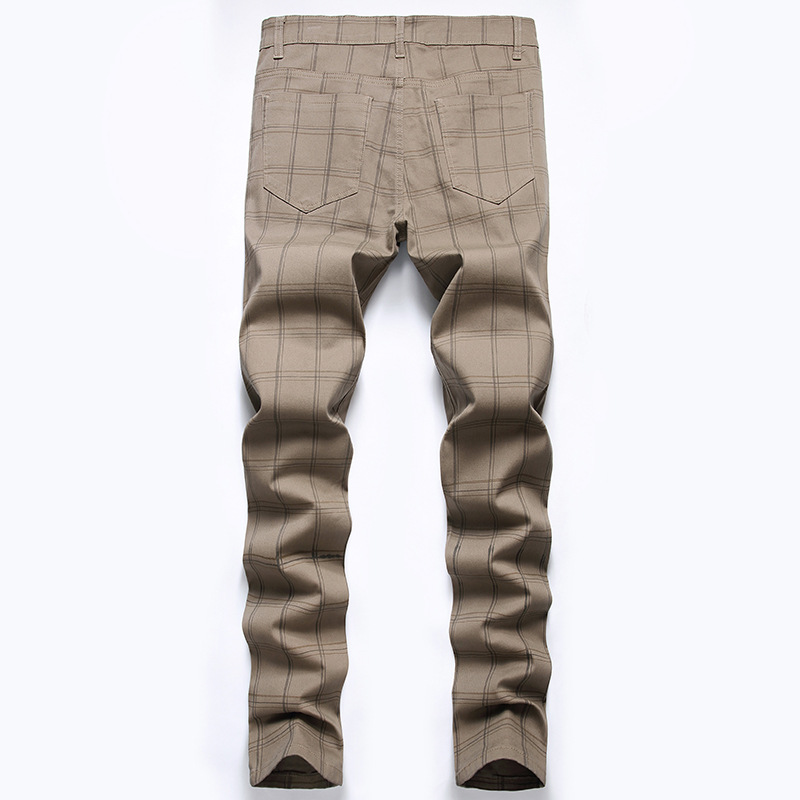 새로운 캐주얼 바지 남자의 크로스 보더 플러스 사이즈 하이 엔드 스트레치 원피스 바지 스트레치 슬림 핏 격자 무늬 바지 유럽과 미국 바지스토어 가기