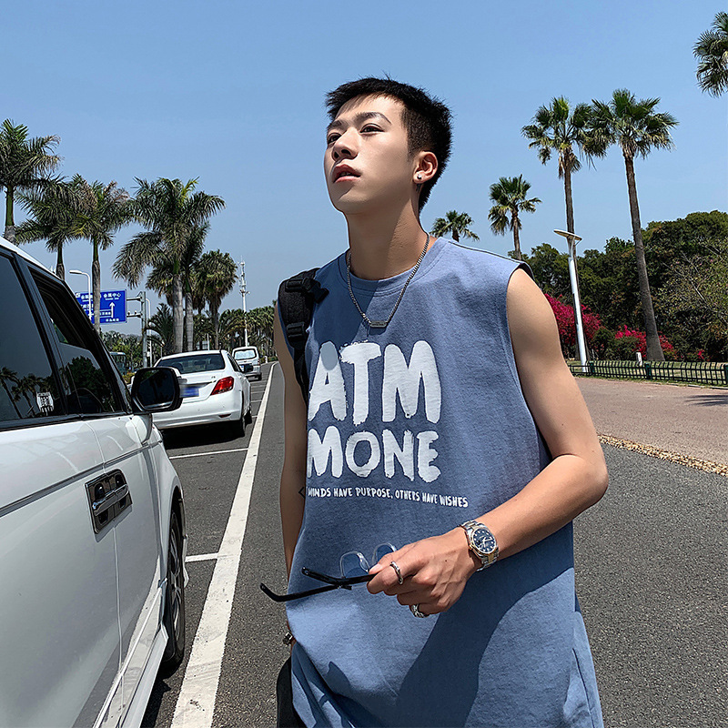민소매 티셔츠 남자의 여름 겉옷 느슨한 스포츠 조끼 패션 브랜드 피트니스 농구 얇은 유행 탑스토어 가기