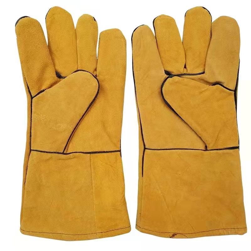 두꺼운 용접 장갑, 화상 방지 용접공 장갑, 양털 가죽 용접 장갑, 긴 이중 보호 용접 장갑