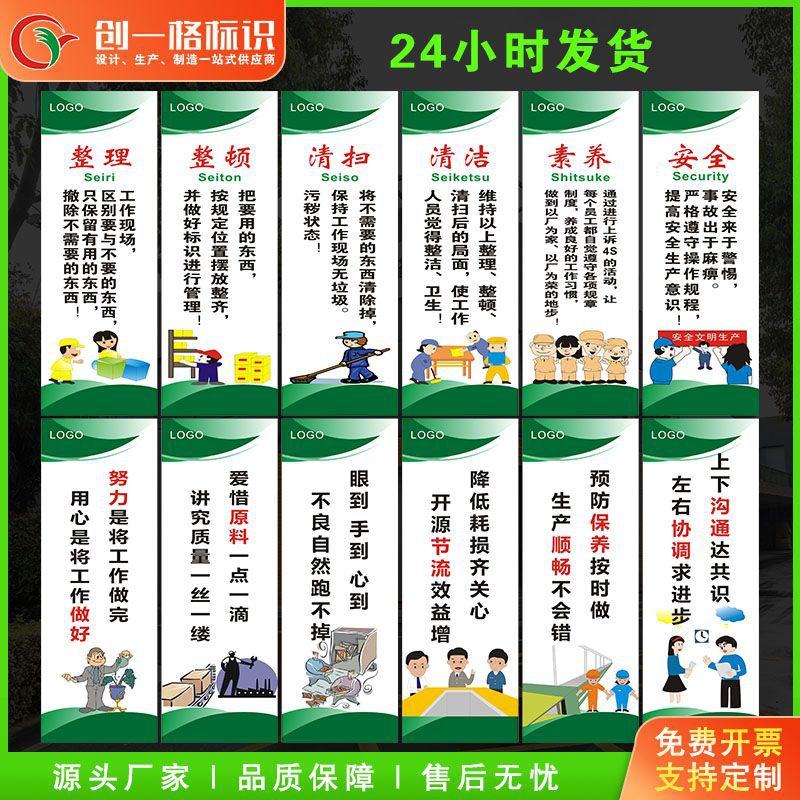 안전 시스템 브랜드 공장 작업장 관리 슬로건 5S6S7S 분류 및 정류 청소 관리 전체 표지판 세트스토어 가기