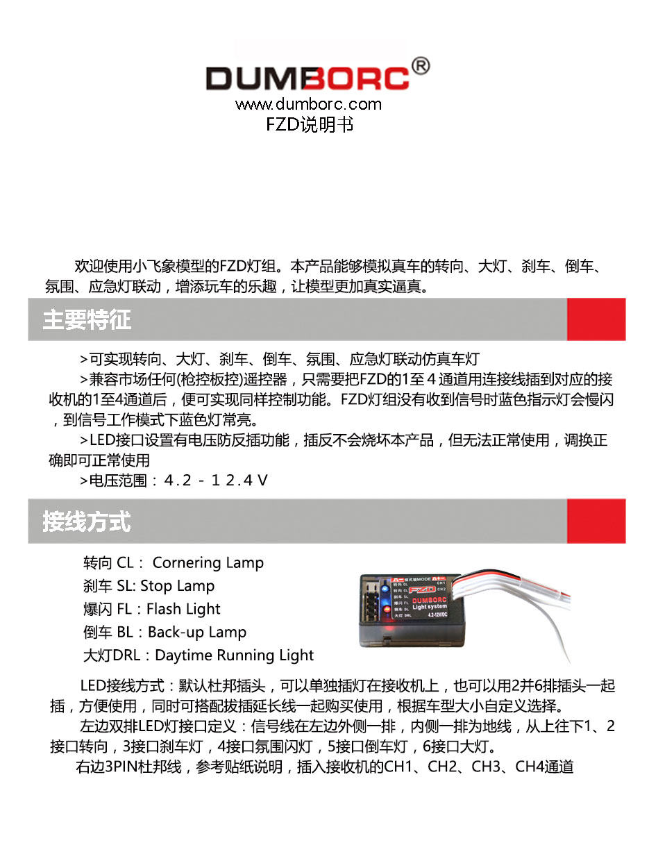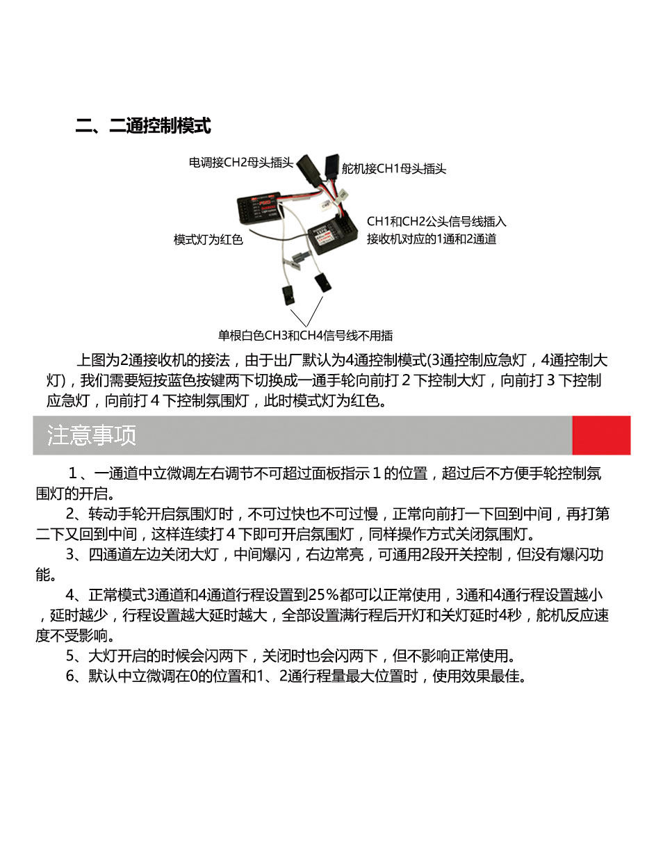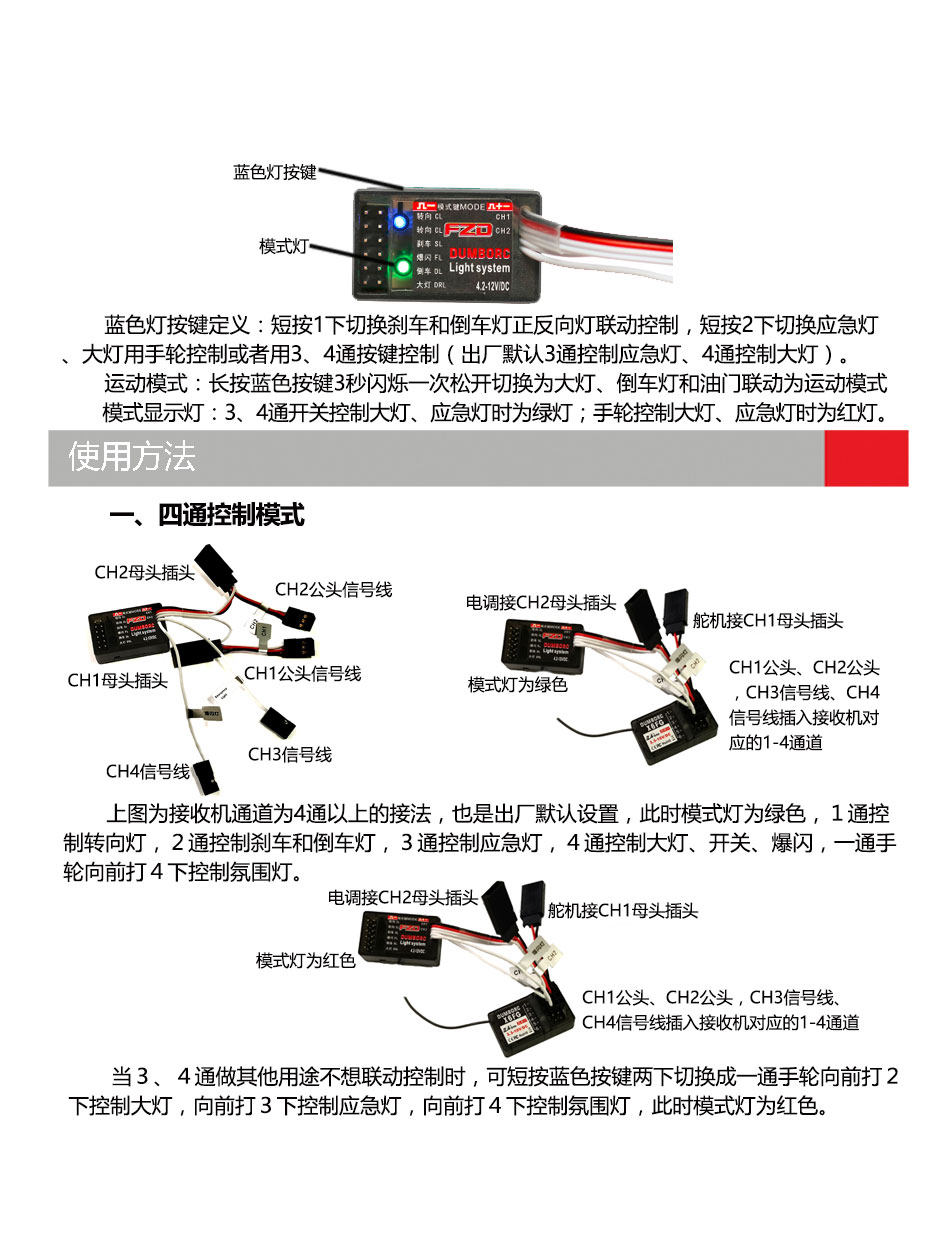 2.兼容市场(枪控板控)遥控器,只需要把对应接收机的1至4通道用连接线插到DC接收机对应的1至4通道后,便可实现同样控制功能。