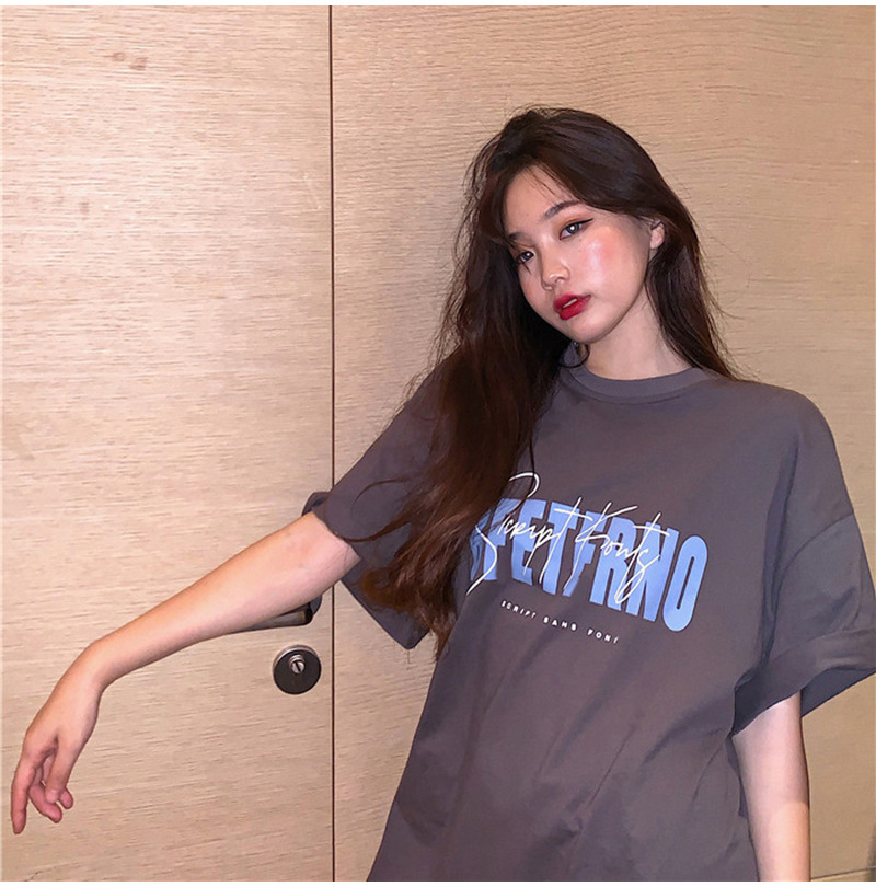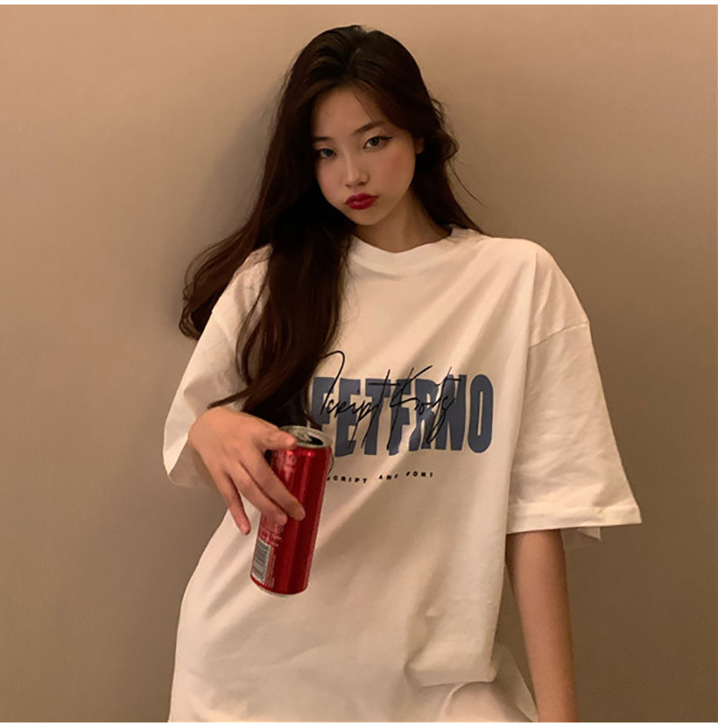여성용 흰색 티셔츠 봄 여름 2025 새로운 한국 스타일 홍콩 스타일 복고풍 프린트 패턴 중간 길이 탑 바닥 셔츠 유행