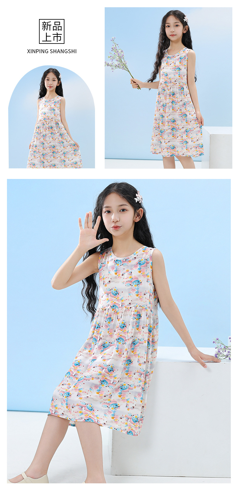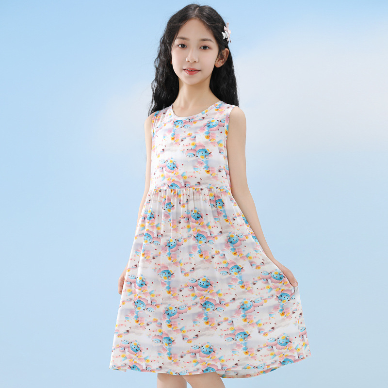 면 실크 원피스 여아 여름 멜빵 스커트 아동 스커트 아기 봄 가을 신상 슬림핏 잠옷 아동복 주름 스커트스토어 가기