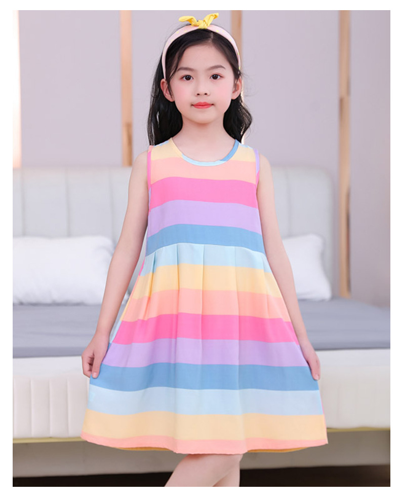 • 무지개 줄무늬 민소매 드레스