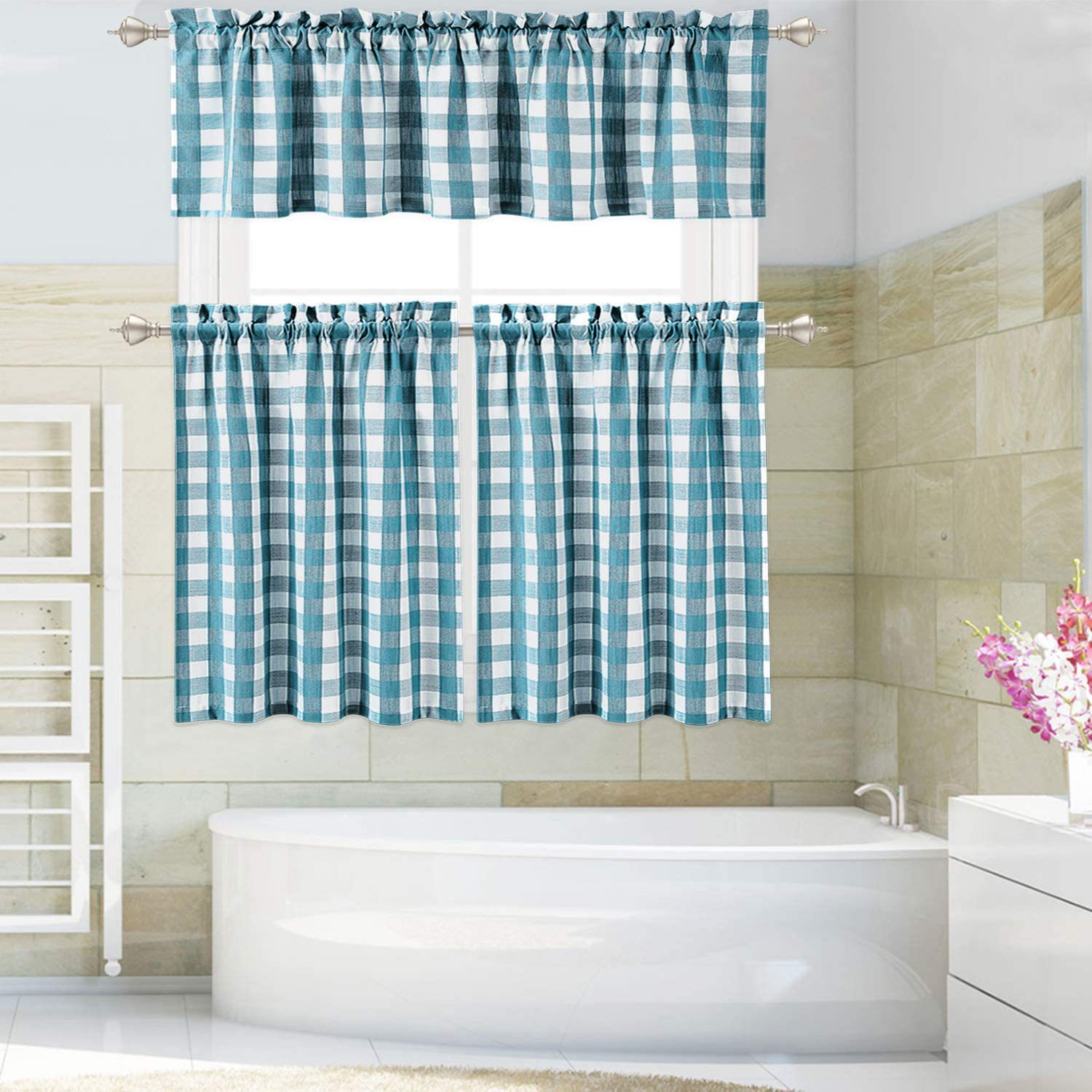 공장 직공급 한국 일본 커튼 완성 주방 대외 무역 소형 쇼트 커튼 심플 격자 무늬 반 커튼 크로스 보더 아마존스토어 가기