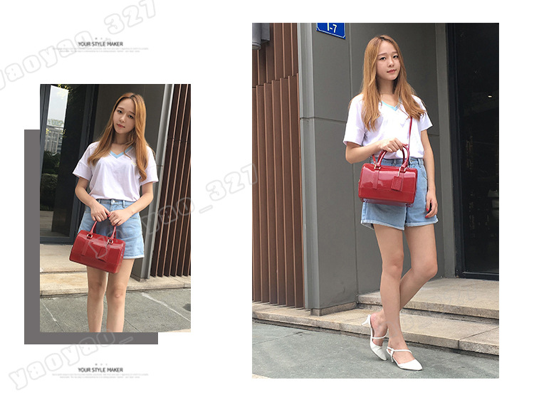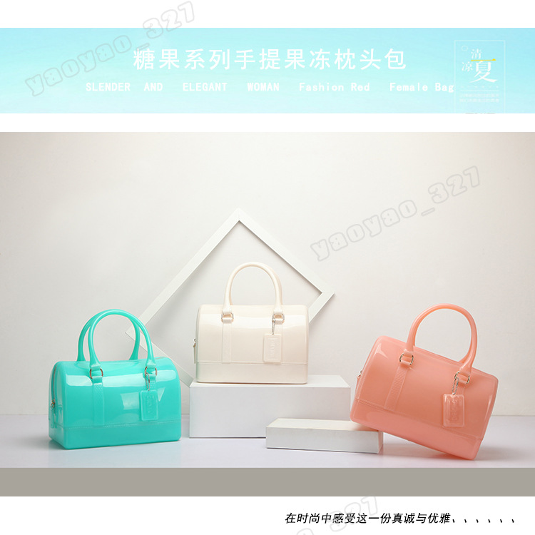 캔디 컬러 젤리 가방 보스턴 베개 가방 어깨 휴대용 크로스 바디 간단한 올 매치 여성 가방 중형 및 대형 대외 무역 가방스토어 가기