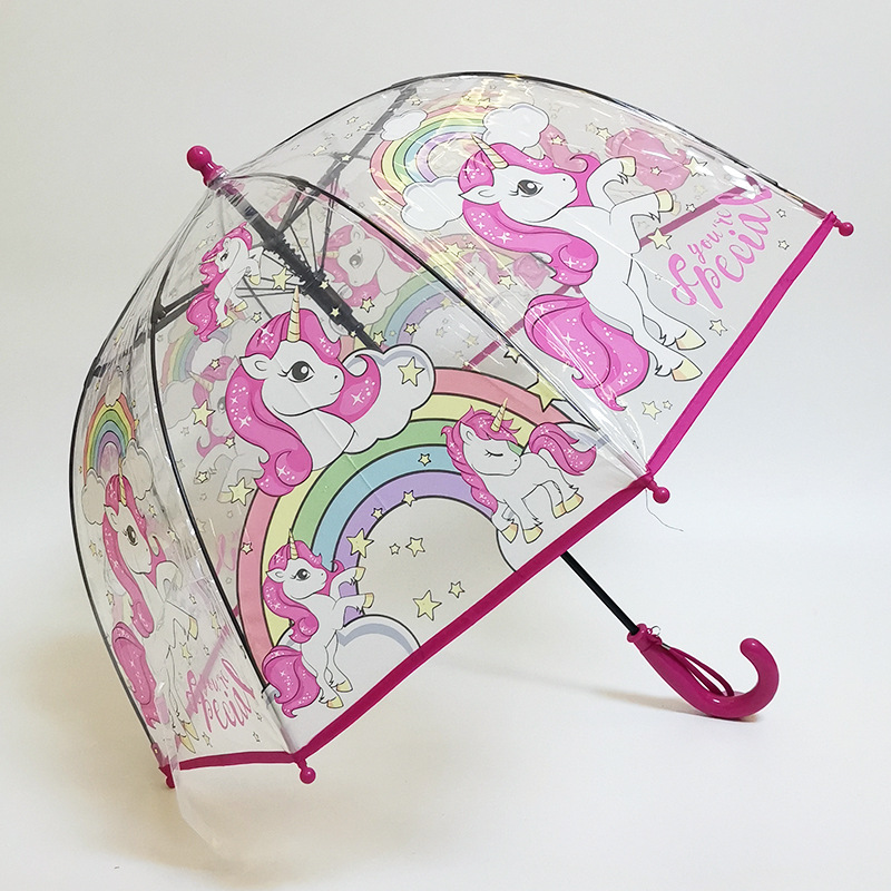 어린이 투명 우산, 일본 및 한국 스타일 스트리트 스타일, 데이지와 웃는 얼굴이 있는 아치형 경량 섬유 우산, 로고 인쇄된 태양 우산