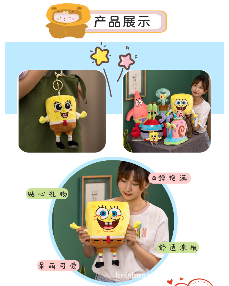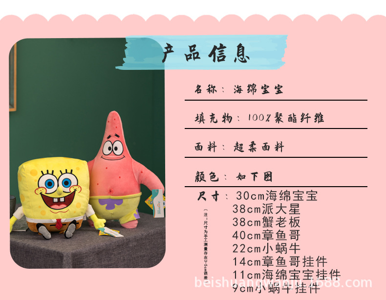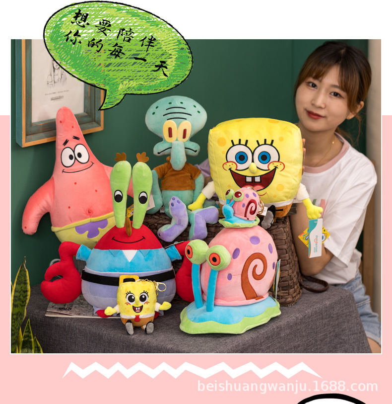 귀여운 정품 스폰지 밥 인형 펜던트 패트릭 스타 플러시 장난감 베개 Squidward 인형 작은 달팽이스토어 가기