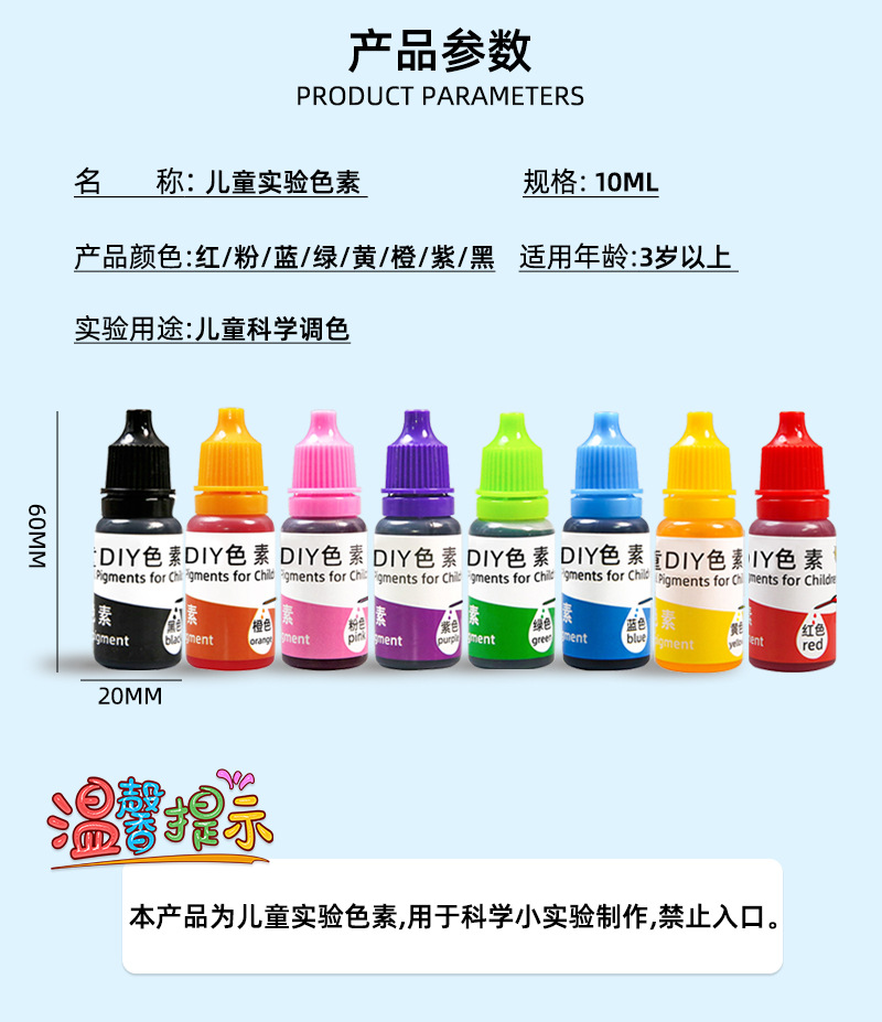 동공 실험 안료 10ml 어린이 과학 실험 색 핸드 톤 슬라임 안료 DIY 재료스토어 가기
