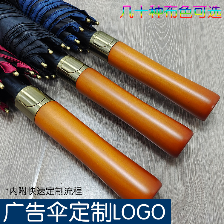 27 인치 골드 버튼 골프 우산 맑고 비오는 우산 고정 로고 광고 우산 직선 막대 나무 손잡이 검은 테이프스토어 가기