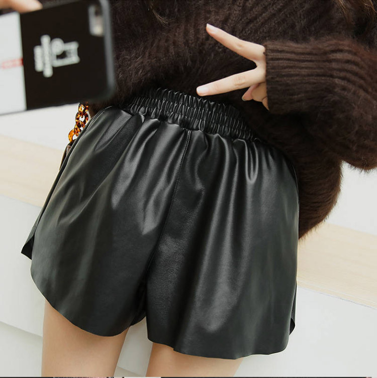 2023 가을과 겨울 새로운 한국 가죽 반바지 여성용 하이 웨이스트 pu 플러스 사이즈 느슨한 슬리밍 캐주얼 a 자형 와이드 부츠 바지스토어 가기