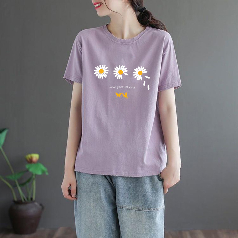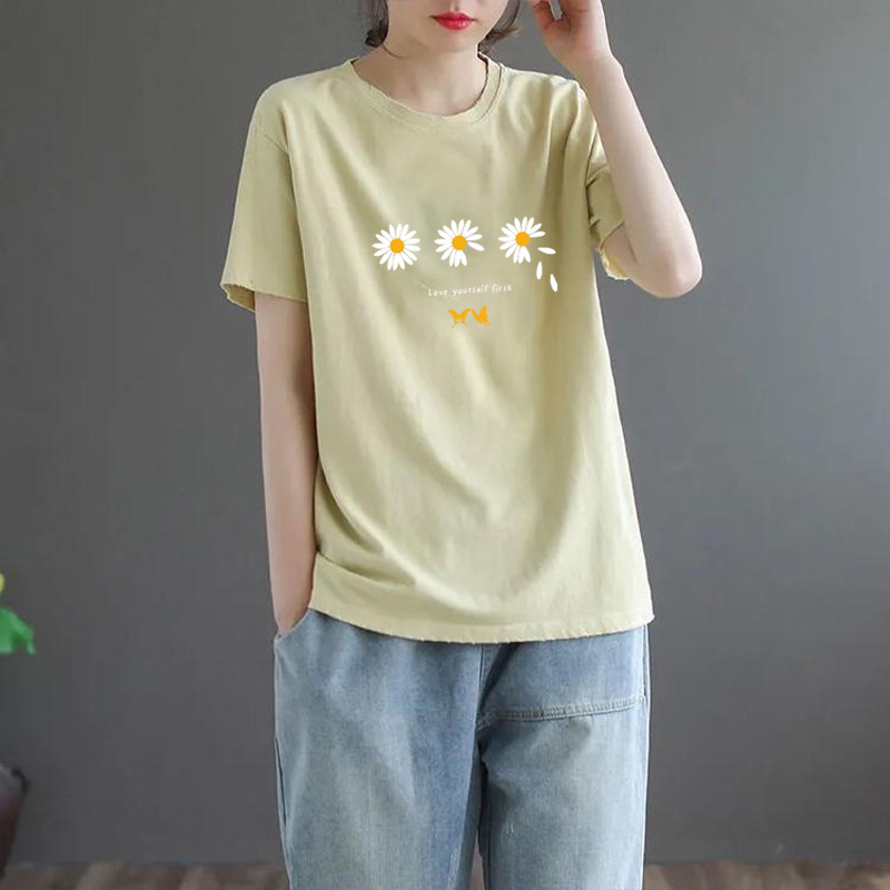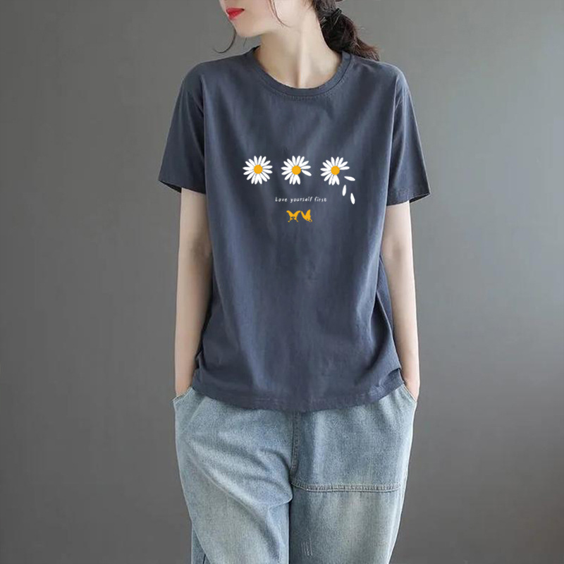 여성용 반팔 티셔츠 2025 뉴 여름 의류 뚱뚱한 mm 플러스 사이즈 엄마 착용 프린트 루즈 여성 티셔츠 한국어 버전 ins 트렌드스토어 가기