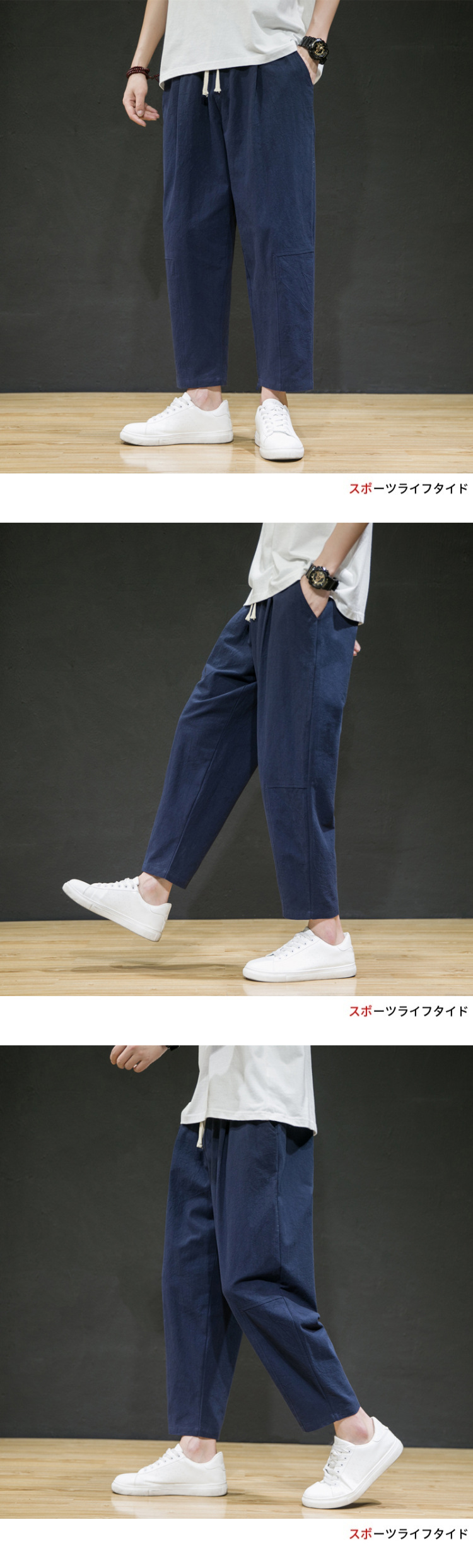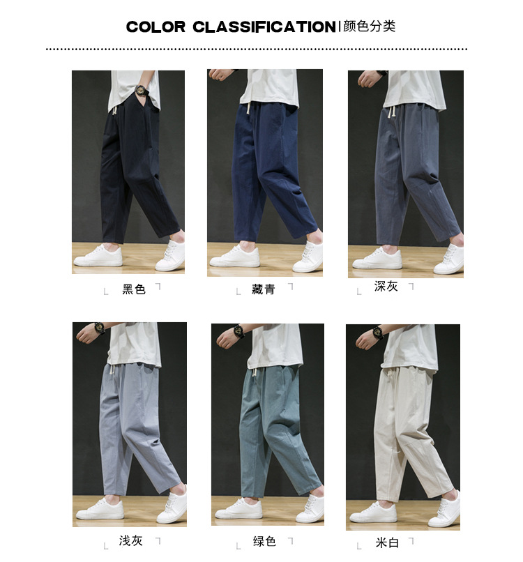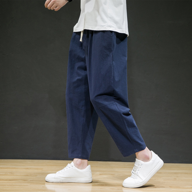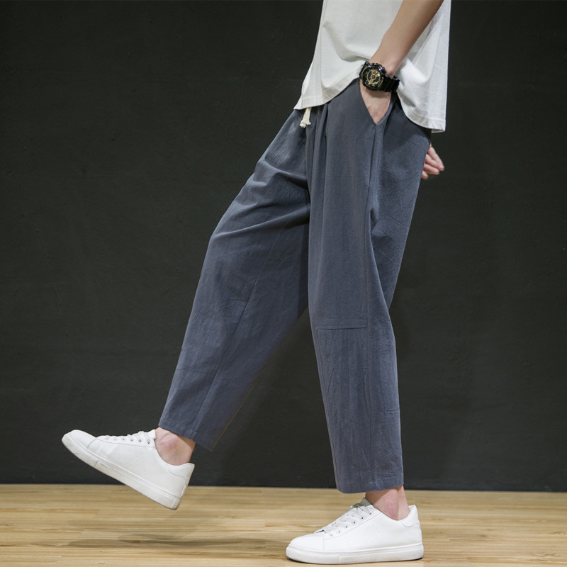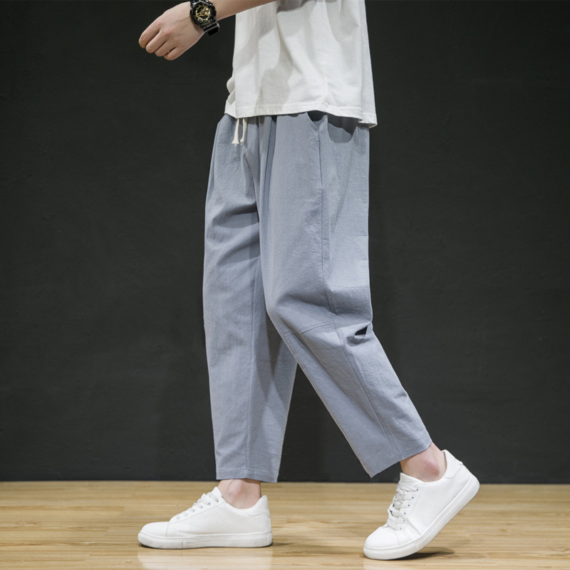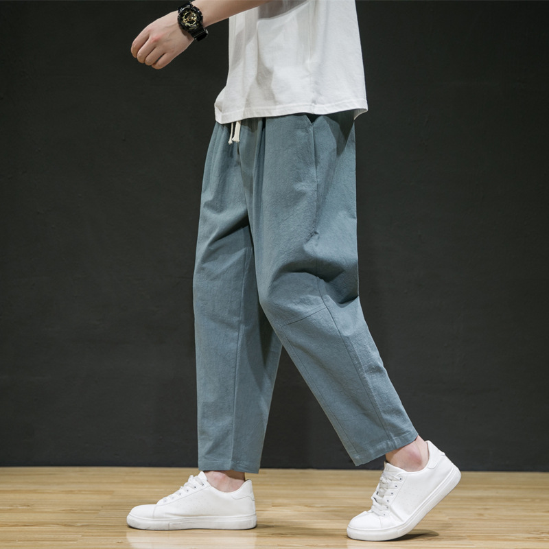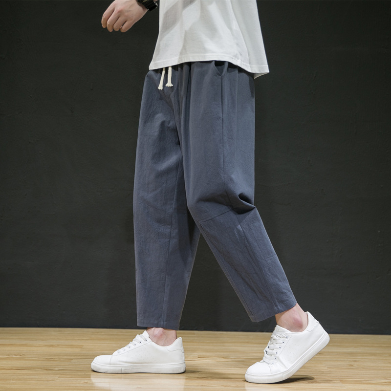 남성용 면마바지 2026 여름 얇은 9부 바지 루즈핏 스트레이트 면마바지 트렌디 브랜드 대형 사이즈 스포츠 캐주얼 바지스토어 가기