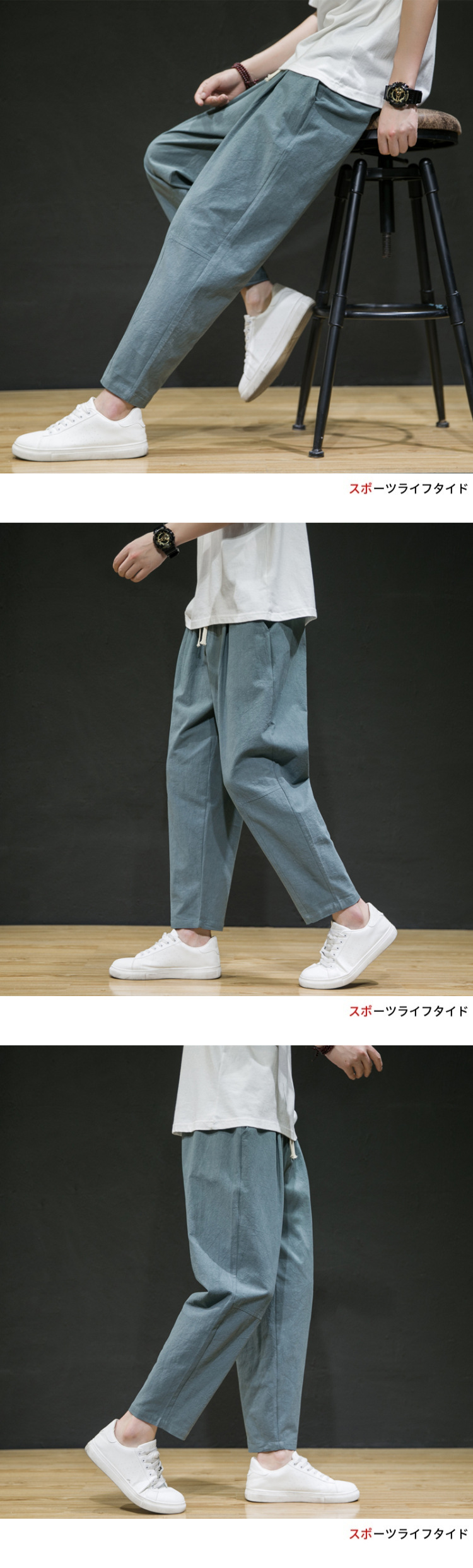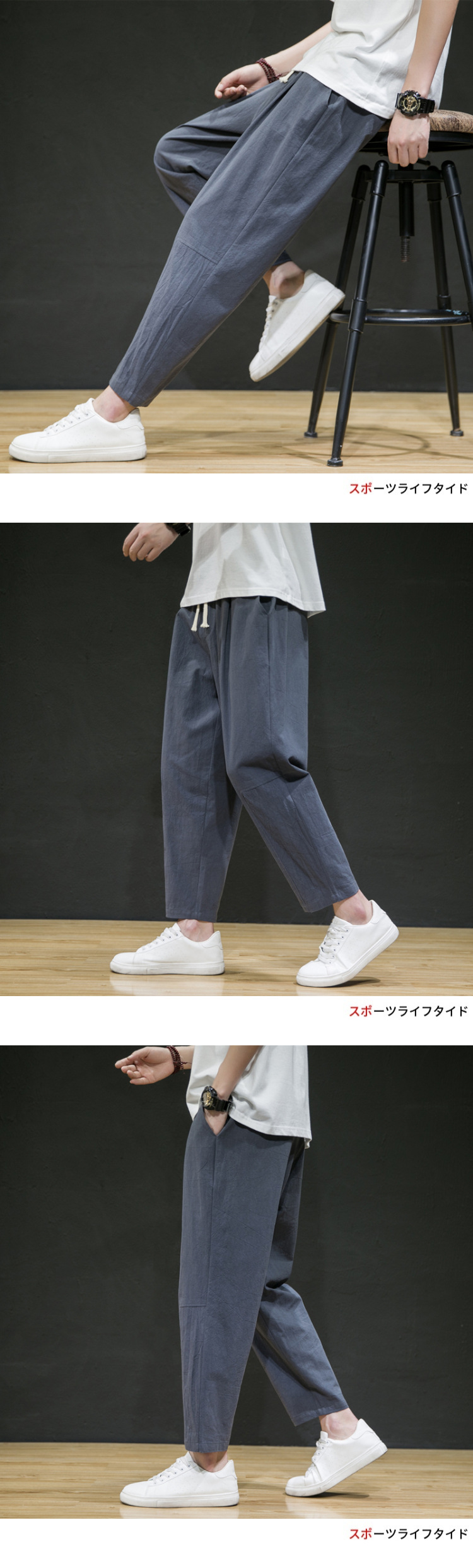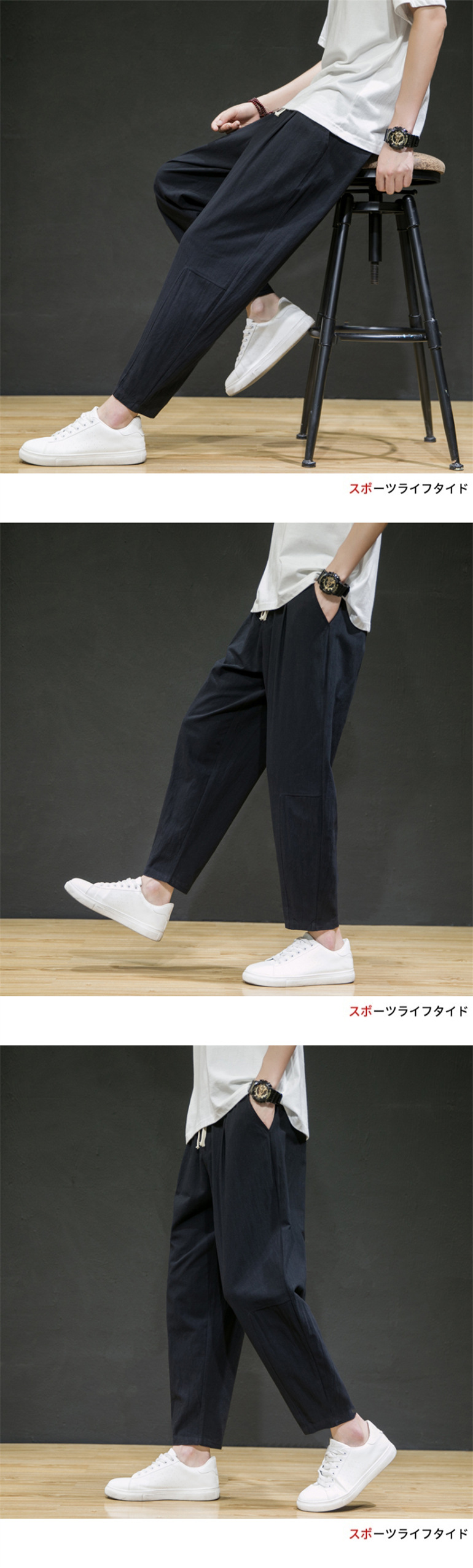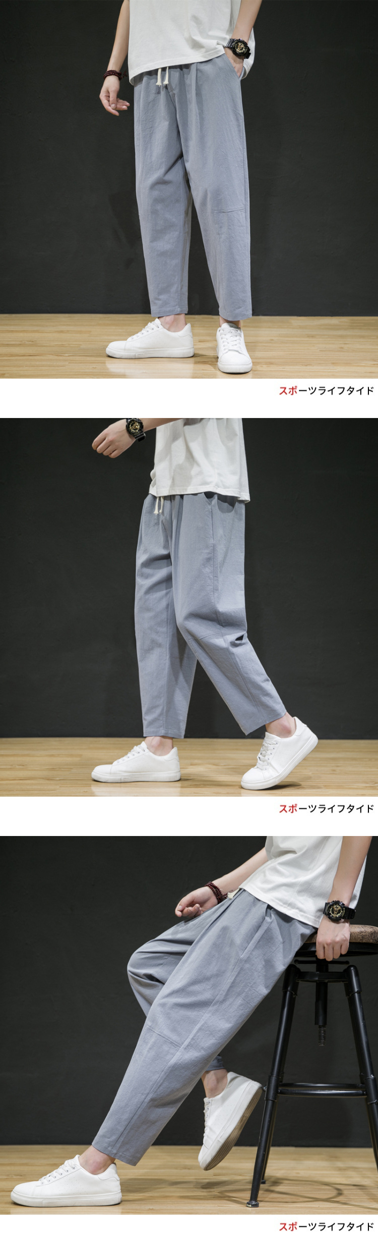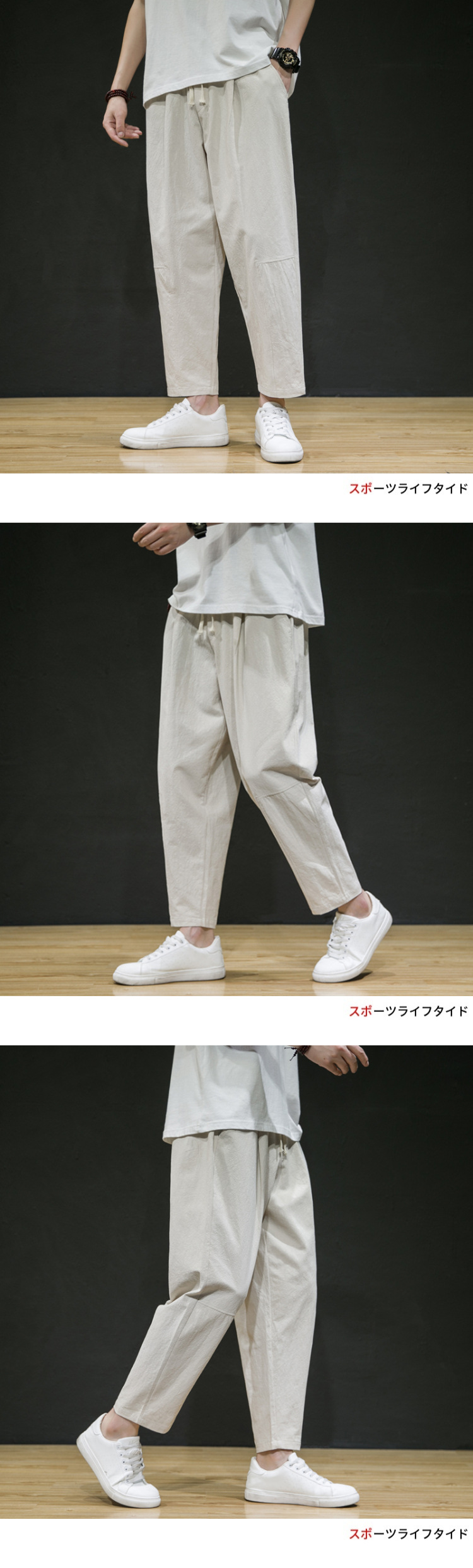 남성용 면마바지 2026 여름 얇은 9부 바지 루즈핏 스트레이트 면마바지 트렌디 브랜드 대형 사이즈 스포츠 캐주얼 바지스토어 가기