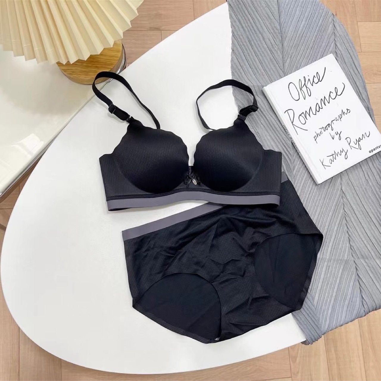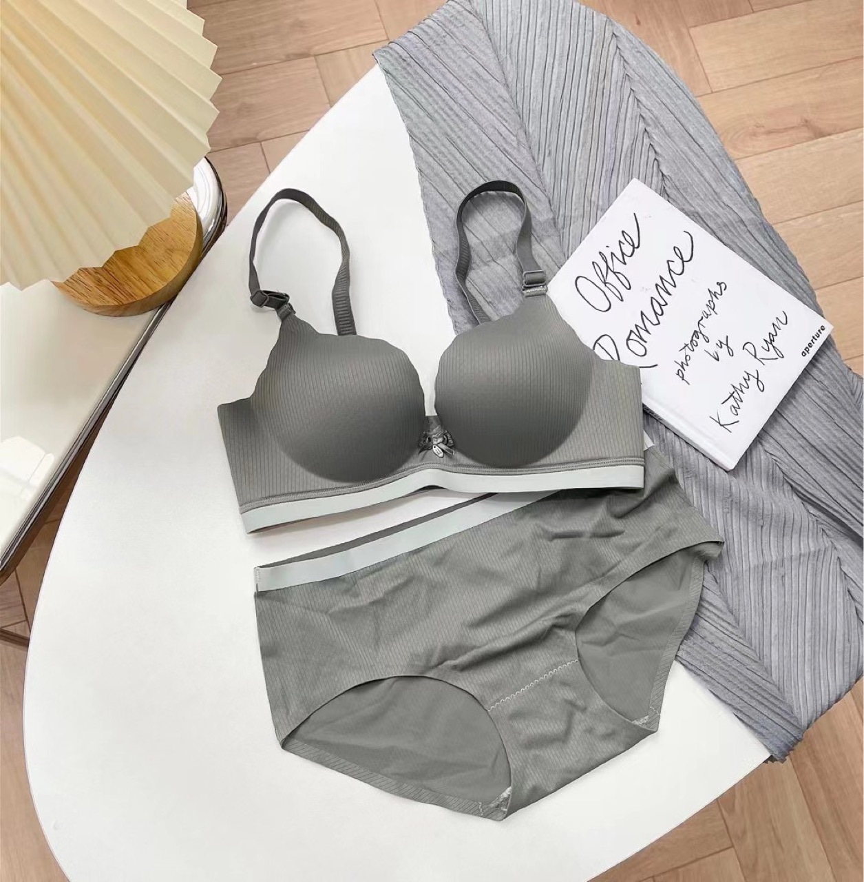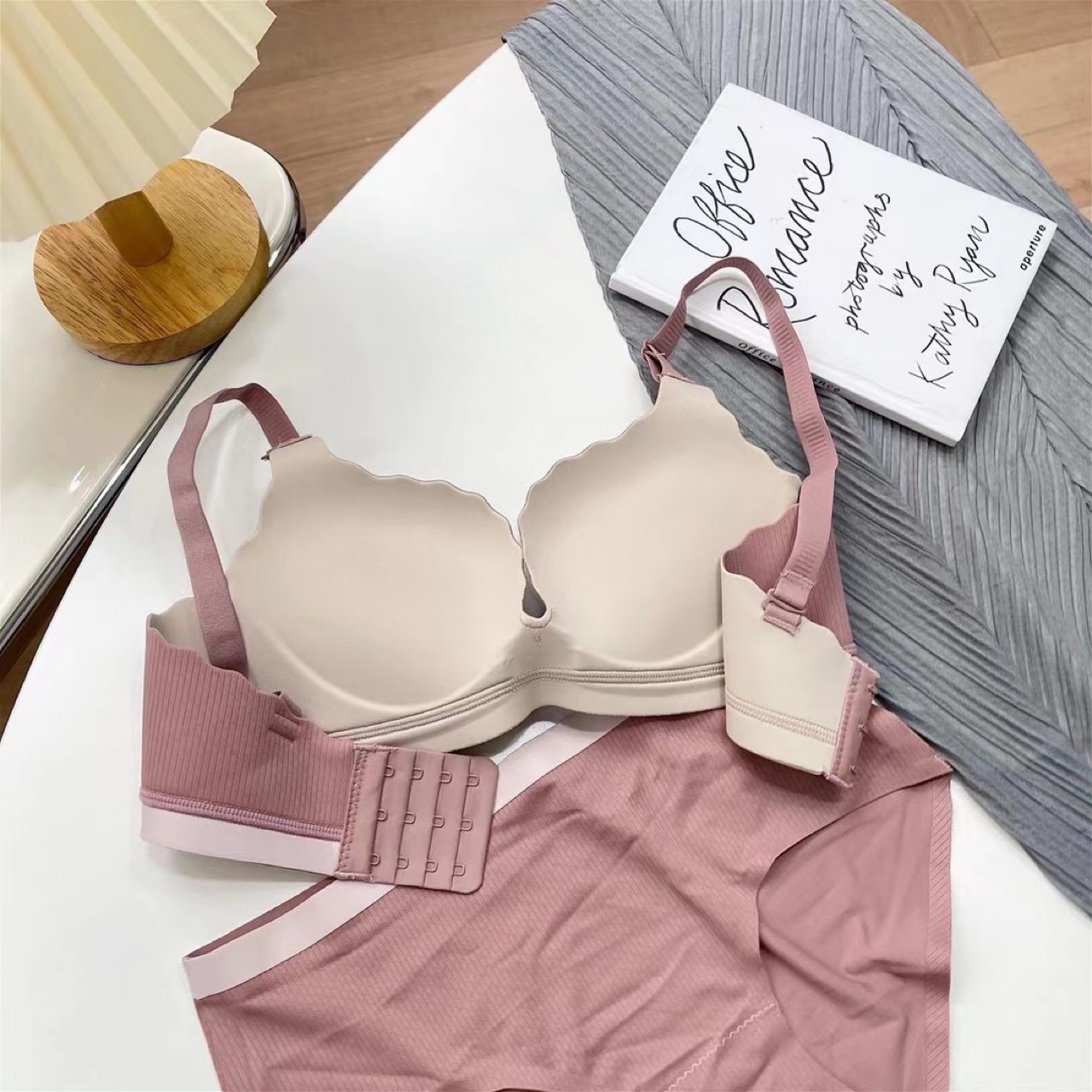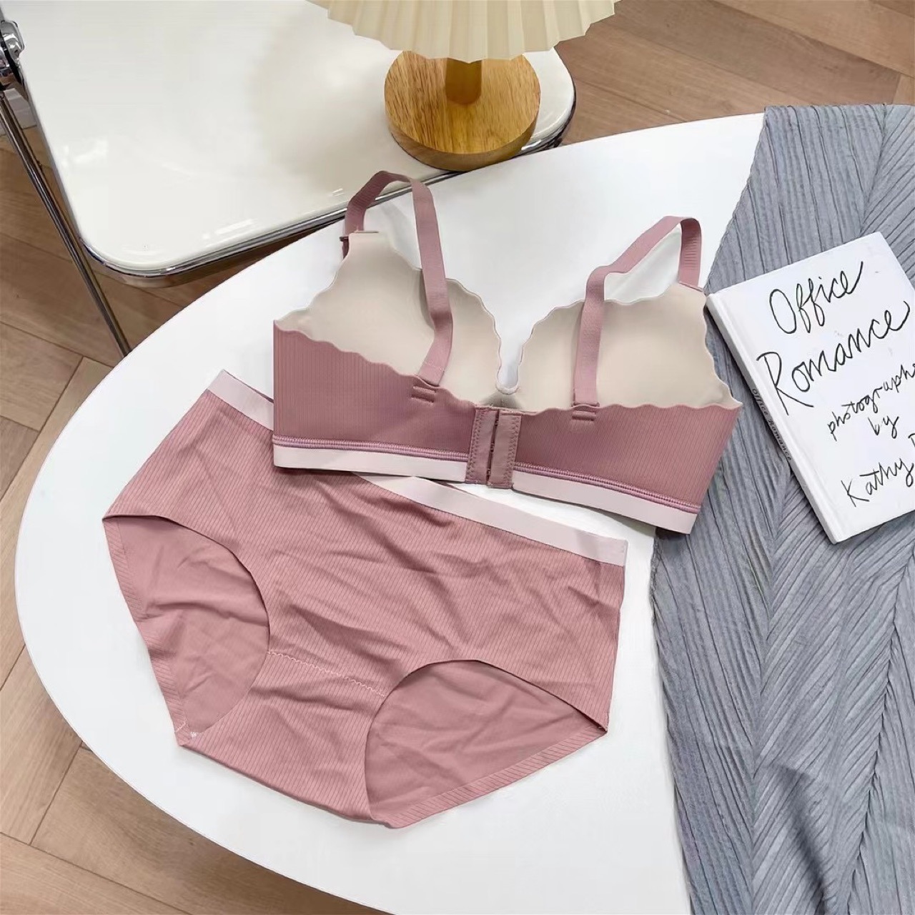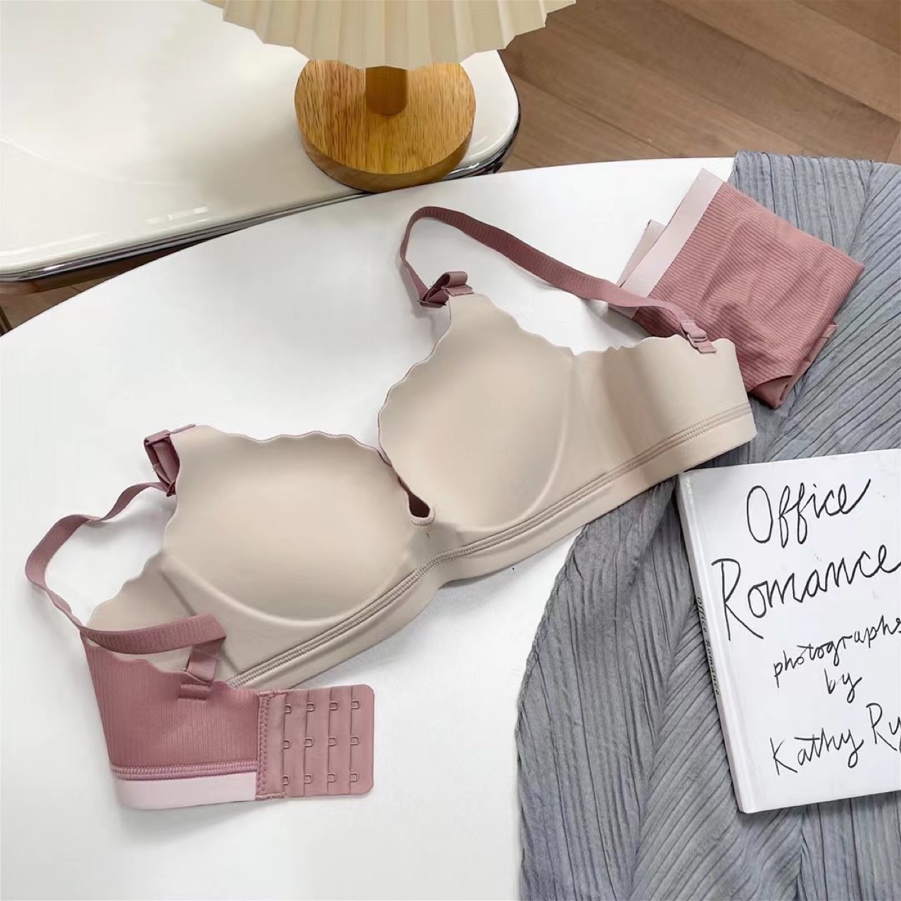 6647 새로운 모임 찐 빵 컵 구름 감각 면 편안한 두꺼운 컵 작은 가슴 없음 강철 반지 원활한 브래지어 속옷 세트