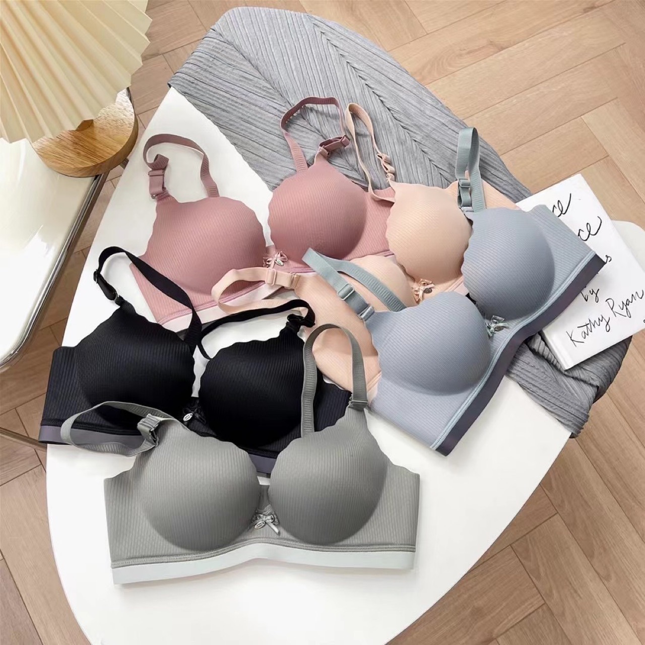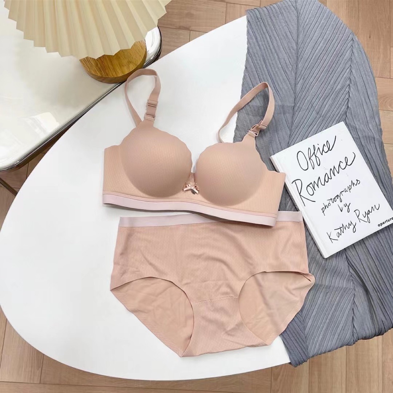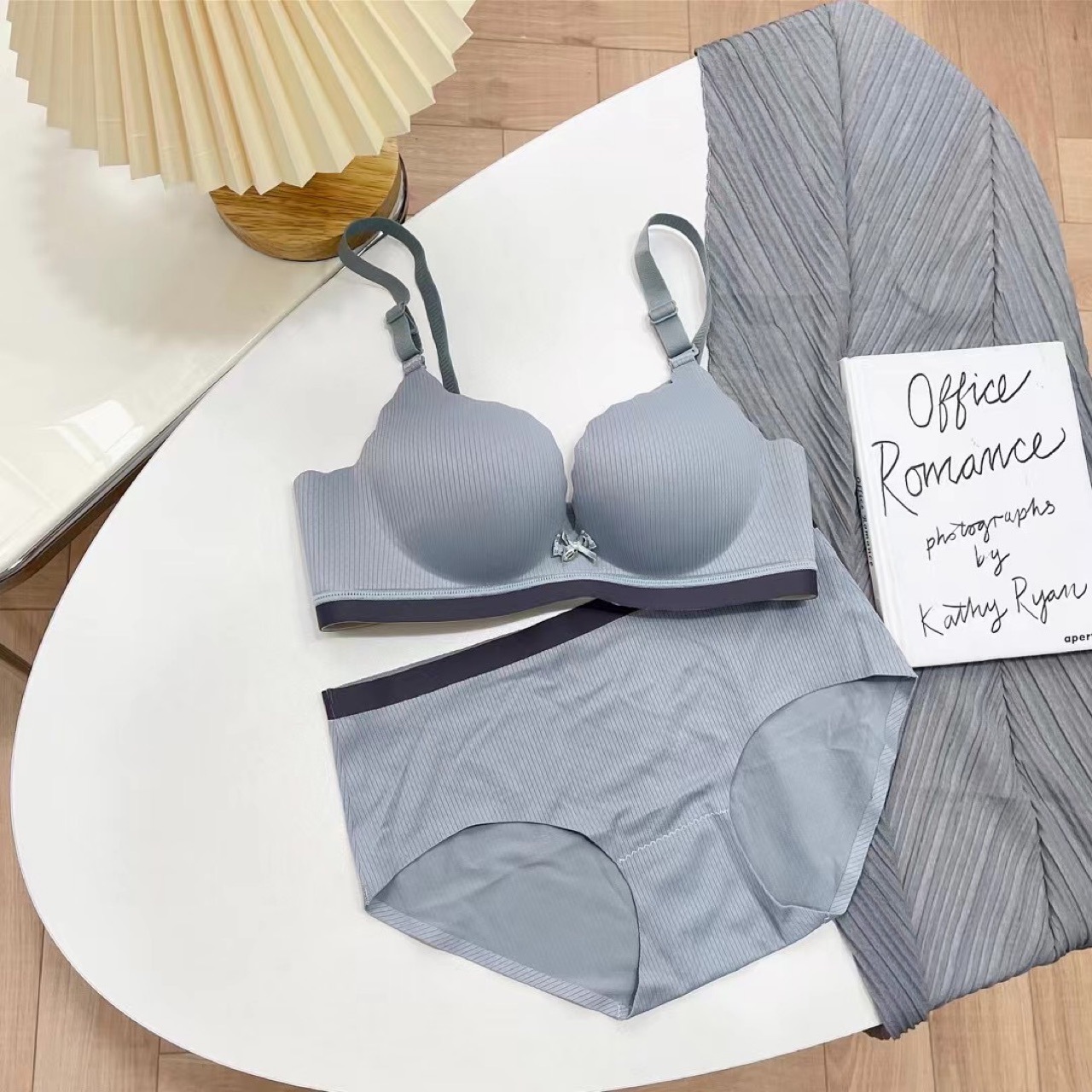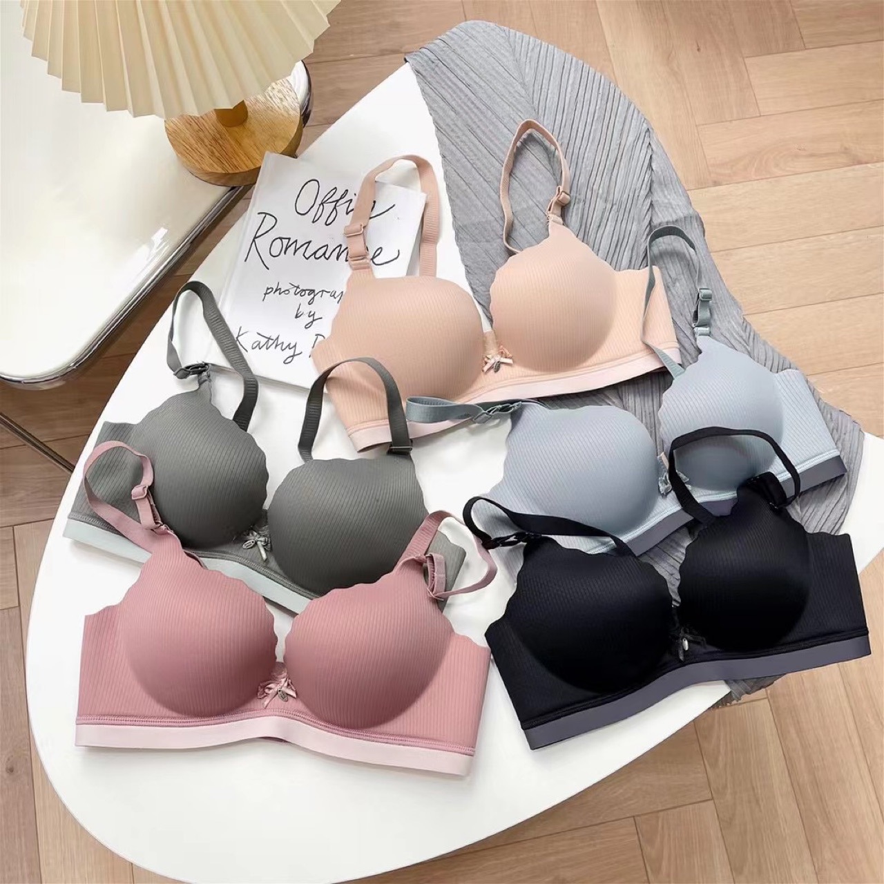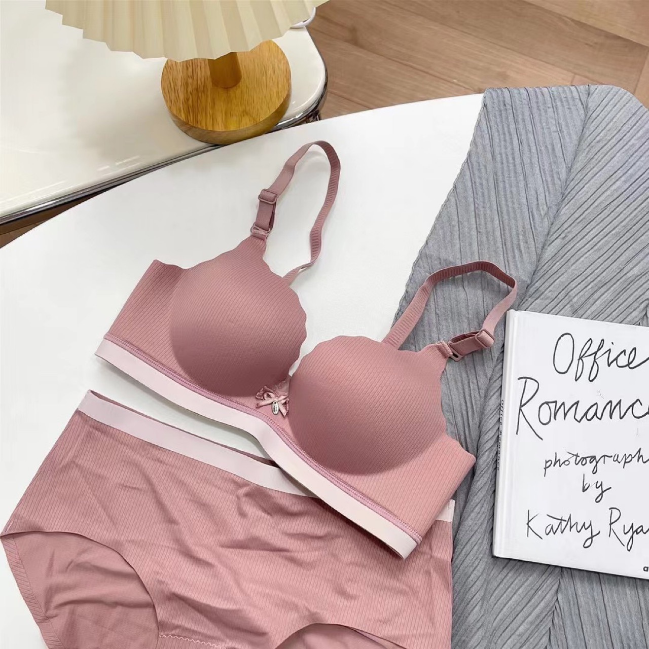6647 새로운 모임 찐 빵 컵 구름 감각 면 편안한 두꺼운 컵 작은 가슴 없음 강철 반지 원활한 브래지어 속옷 세트스토어 가기