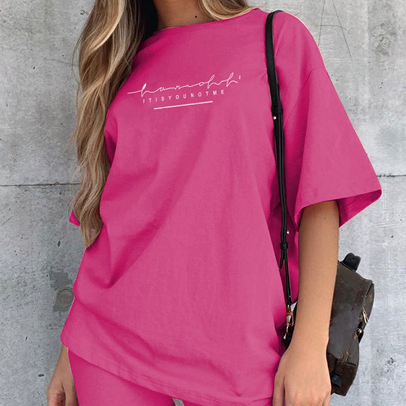 2024 유럽과 미국의 새로운 편지 인쇄 패션 느슨한 슬림 티셔츠 여성을위한 캐주얼 스포츠 투피스 양복
