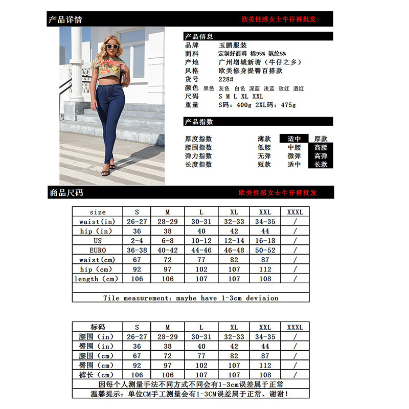 가을 여성용 크로스보더 유럽풍 패션 블랙 고탄력 슬림핏 빅사이즈 힙업 여성 데님 팬츠 재고 있음