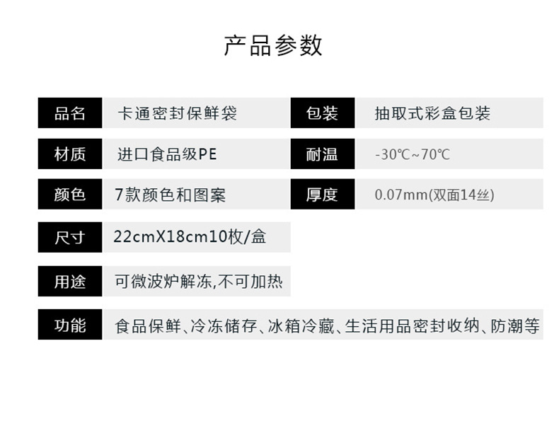 두꺼운 이중 봉지 밀봉 신선 보관 가방 가정용 식품 냉동 냉장 냉장고 분할 가방 만화 캐릭터 밀봉 가방 식품 등급