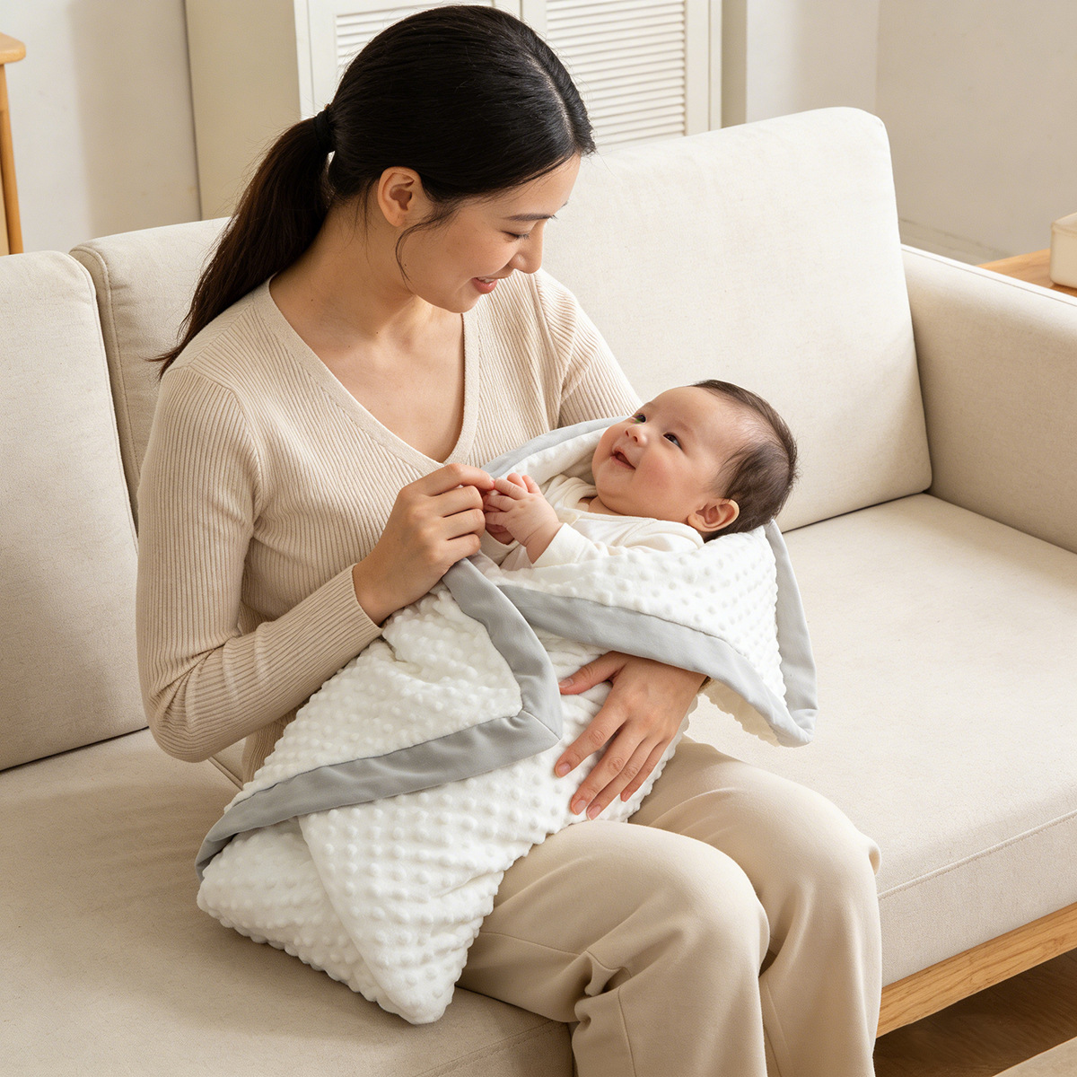 신생아 완두콩 벨벳 편안한 담요 아기 더블 레이어 가장자리 프레스 담요 아기 담요 단색 이불