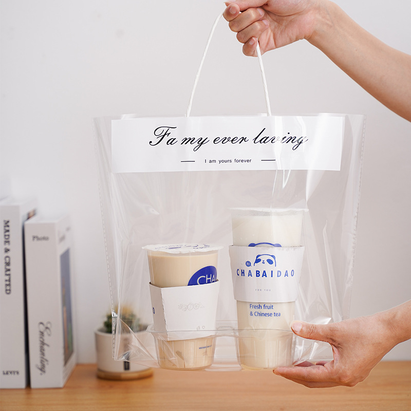 밀크티백, 포장백, 싱글컵/더블컵 테이크아웃 커피 음료 포장백, 로고 인쇄 가능, 플라스틱 가방, 손잡이형