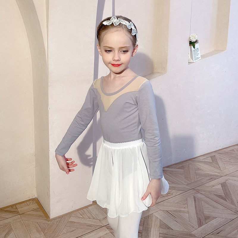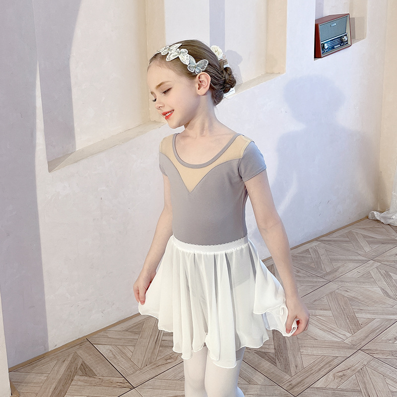 어린이 댄스 옷 여아 여름 반팔 연습 옷 분할 세트 쉬폰 어린이 발레 스커트 테스트 레벨 연습 댄스스토어 가기