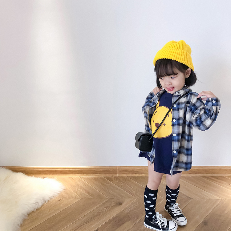 [맞춤형 가공] 한국 스타일 아동복 가을 캐주얼 대형 격자 무늬 긴팔 셔츠 소년 소녀용 트렌디스토어 가기