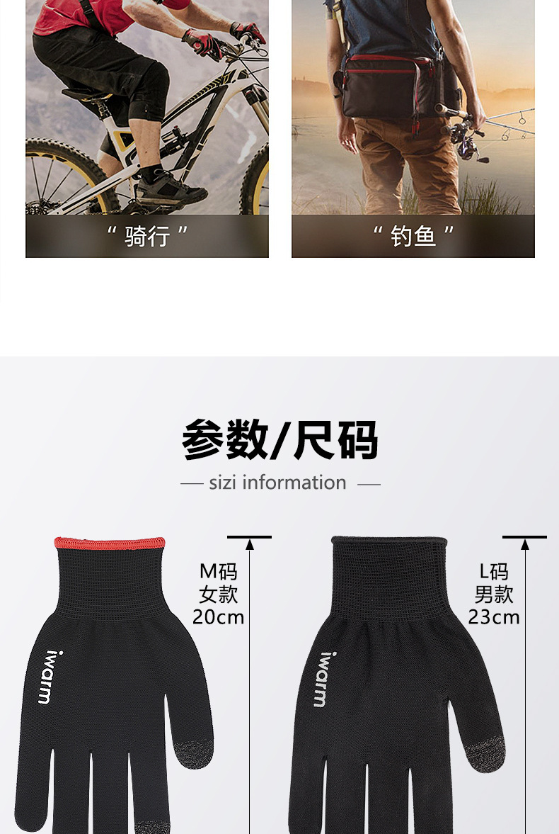 Iwarm 사랑 따뜻한 태양 보호 장갑 남성과 여성의 여름 야외 자외선 차단 운전 미끄럼 방지 터치 스크린 승마 장갑