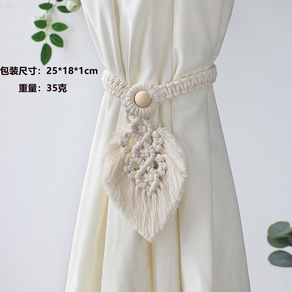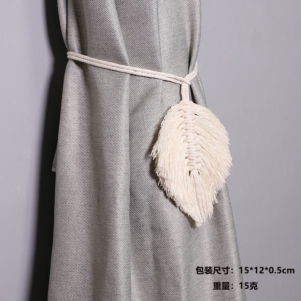 인 보헤미안 짠 커튼 테이프 묶는 밧줄 간단한 술 잎 나무 구슬 장식 커튼 묶는 밧줄 장식