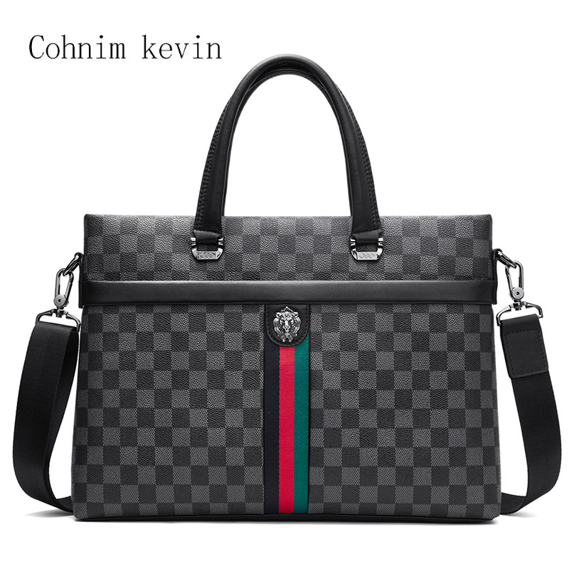 남성용 핸드백 격자 무늬 비즈니스 대용량 14inch 노트북 가방 서류 가방 싱글 숄더 크로스바디 남성용 가방스토어 가기