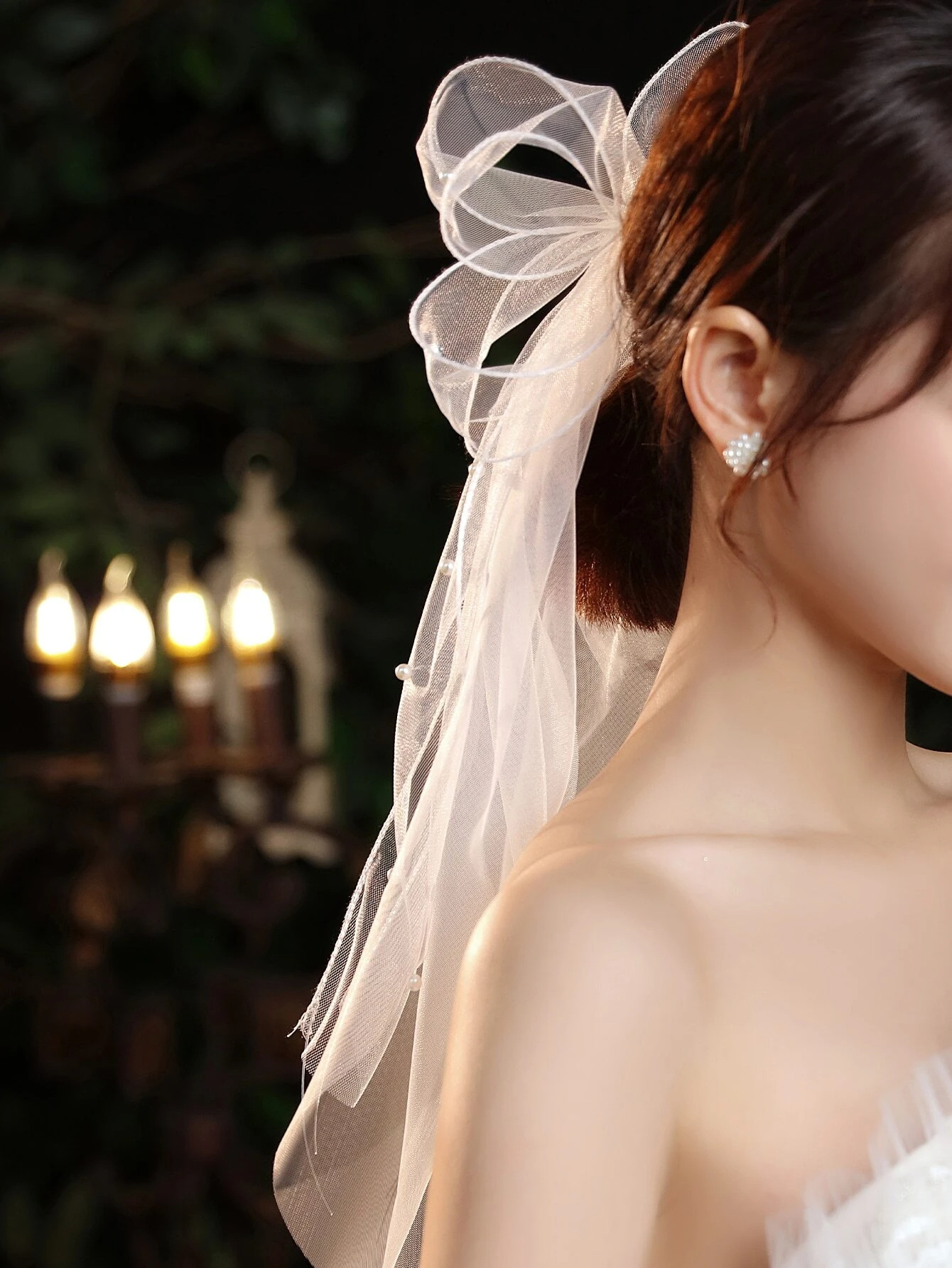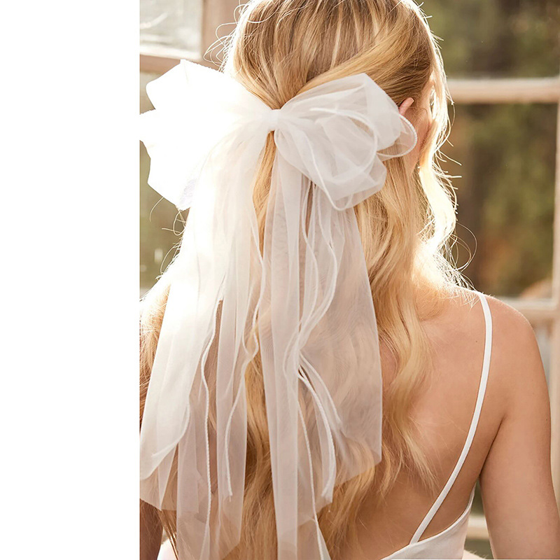 새로운 인터넷 연예인 슈퍼 요정 메쉬 리본 진주 활 웨딩 원피스 우아한 소녀 탑 클립 머리핀 헤어 액세서리스토어 가기