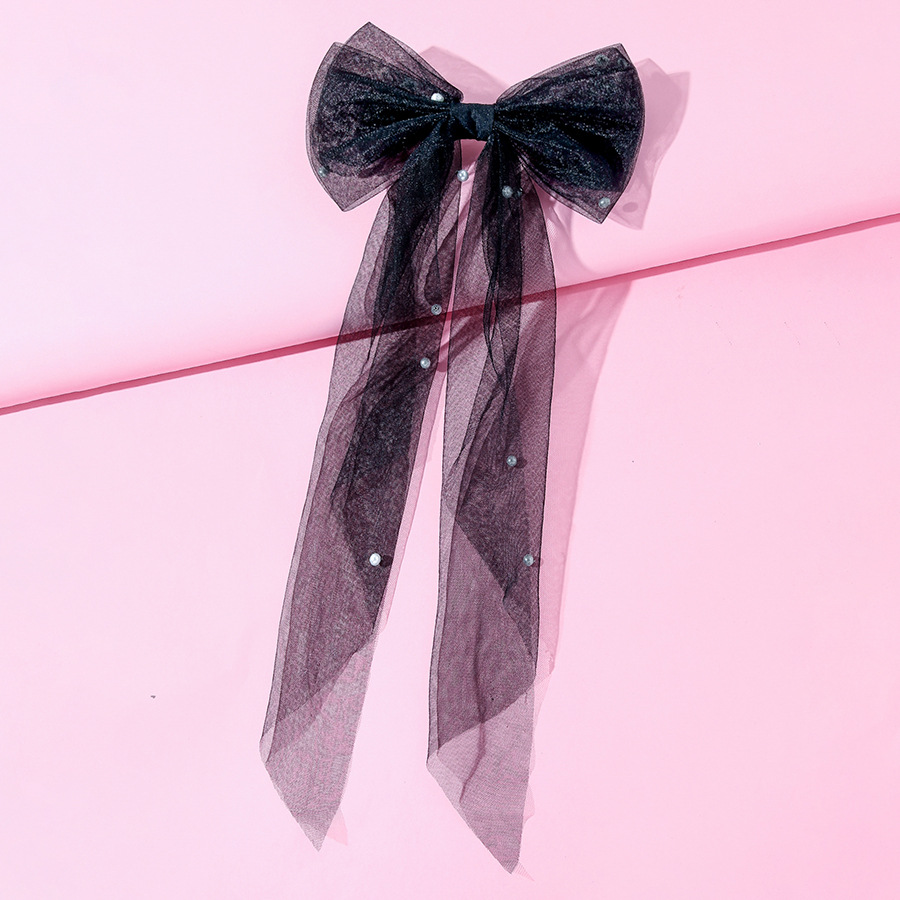 새로운 인터넷 연예인 슈퍼 요정 메쉬 리본 진주 활 웨딩 원피스 우아한 소녀 탑 클립 머리핀 헤어 액세서리