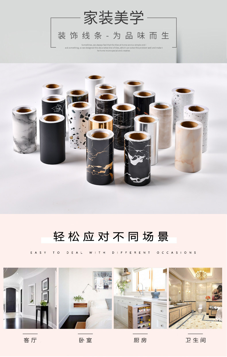 도매 자체 접착식 키티라인 스톤 패턴 벽 스티커 욕실 방수 웨이스트라인 창틀 프레임 웨이브라인 바닥 라인 도매스토어 가기